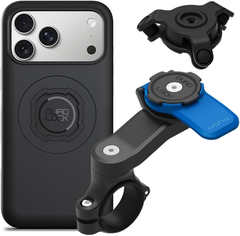Quad Lock Motorcycle Handlebar Mount Kit with Vibration Dampener and MAG Phone Case for iPhone 17 Pro Max
