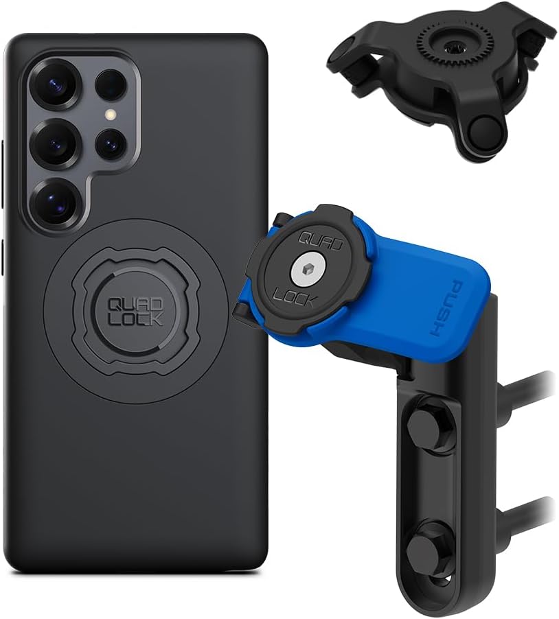 Quad Lock Brake/Clutch Motorcycle Phone Mount with Vibration Dampener and MAG Phone Case for Galaxy S25 Ultra