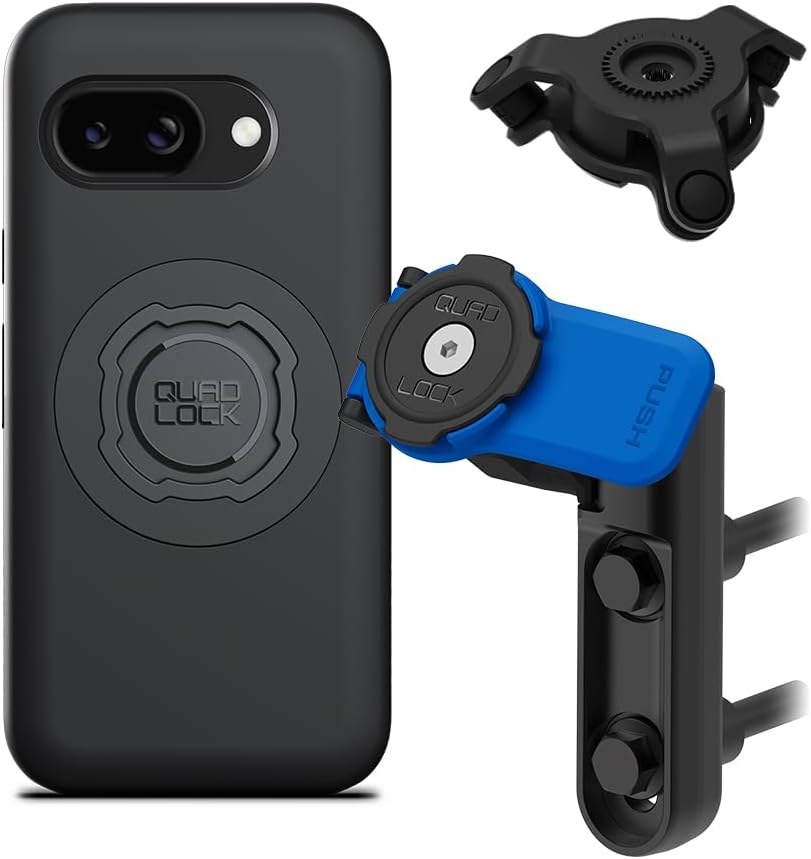 Quad Lock Brake/Clutch Motorcycle Phone Mount with Vibration Dampener and MAG Phone Case for Google Pixel 9a