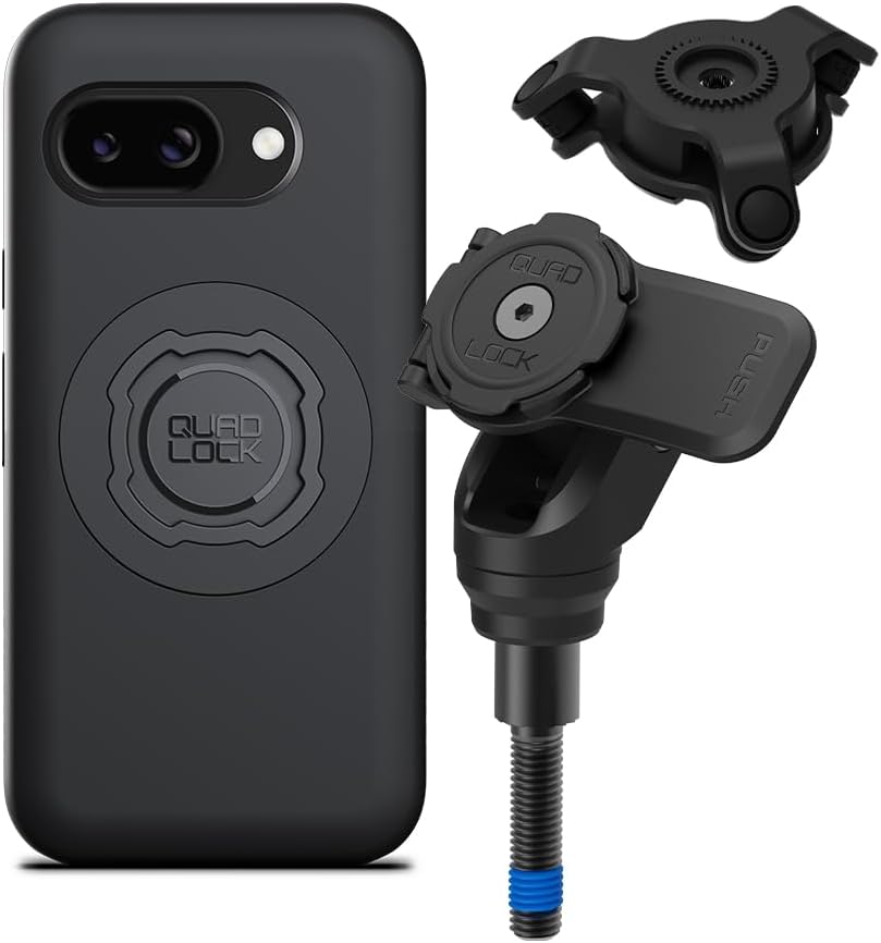 Quad Lock Handlebar Clamp PRO Motorcycle Phone Mount with Vibration Dampener and MAG Phone Case for Google Pixel 9a