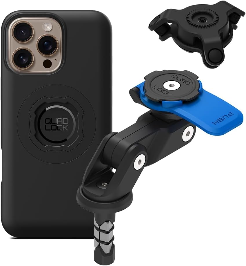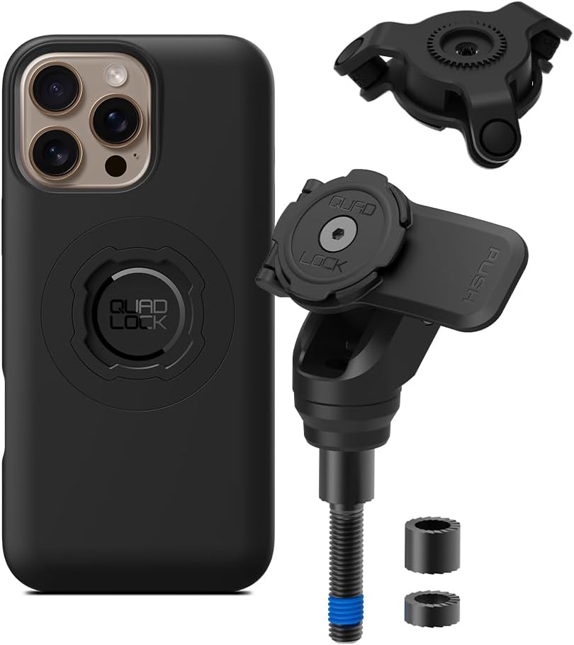 Quad Lock Fork Stem Motorcycle Phone Mount (V2) with MAG Phone Case and Vibration Dampener for iPhone 16 Pro Max