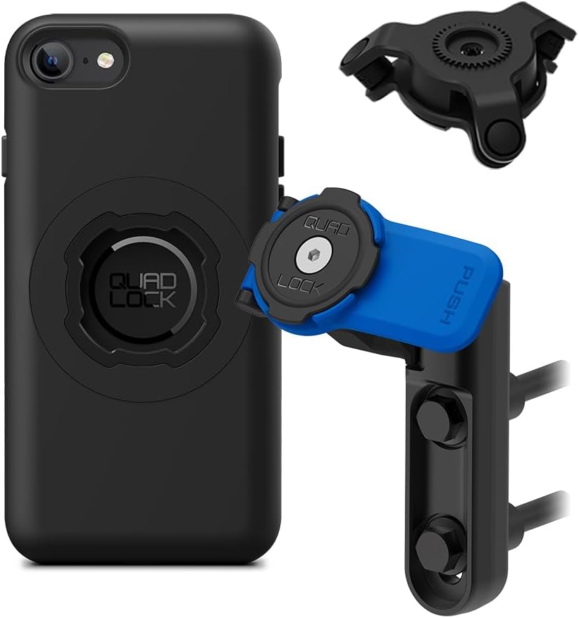 Quad Lock Brake/Clutch Motorcycle Phone Mount with Vibration Dampener and MAG Phone Case for iPhone SE (3rd / 2nd Gen) & 8/7