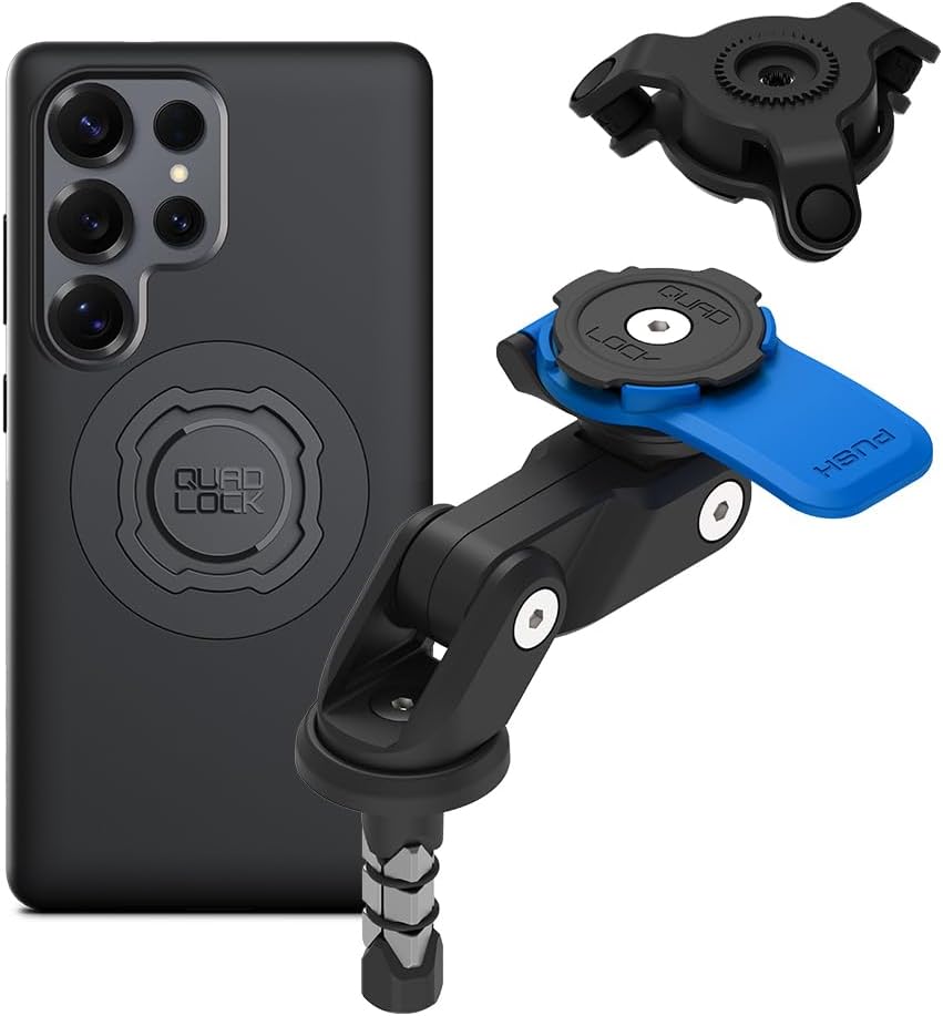 Quad Lock Fork Stem Motorcycle Phone Mount (V2) with MAG Phone Case and Vibration Dampener for Galaxy S25 Ultra