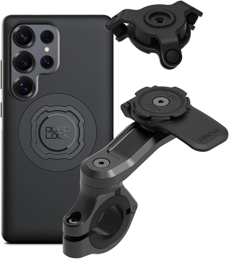 Quad Lock Motorcycle Handlebar Mount PRO Kit with Vibration Dampener and MAG Phone Case for Samsung Galaxy S25 Ultra
