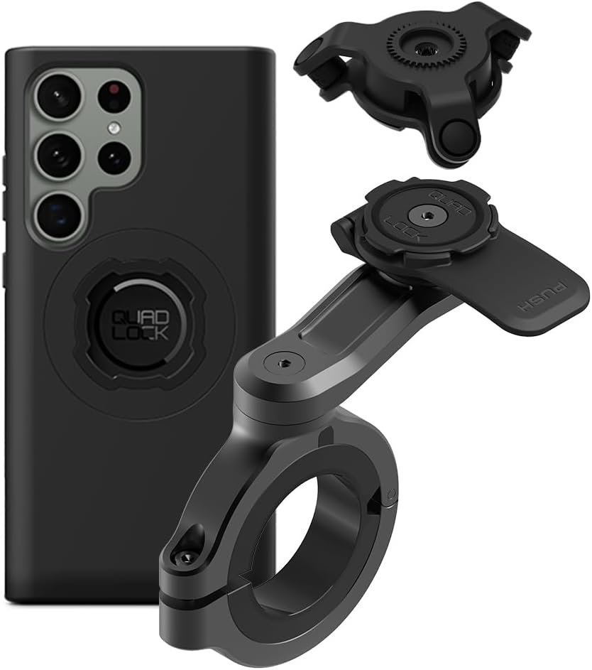 Quad Lock Motorcycle Handlebar Phone Mount PRO - Large with Vibration Dampener and MAG Phone Case for Galaxy S23 Ultra