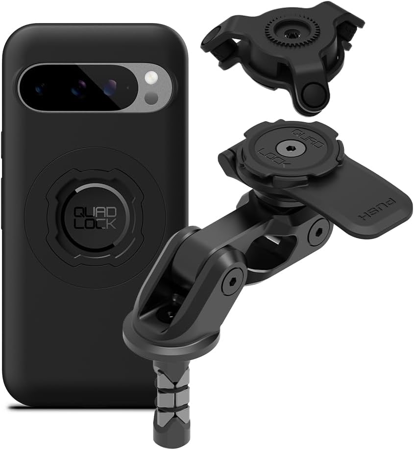 Quad Lock Motorcycle Handlebar Phone Mount PRO - Large with Vibration Dampener and MAG Phone Case for Pixel 9/9 Pro