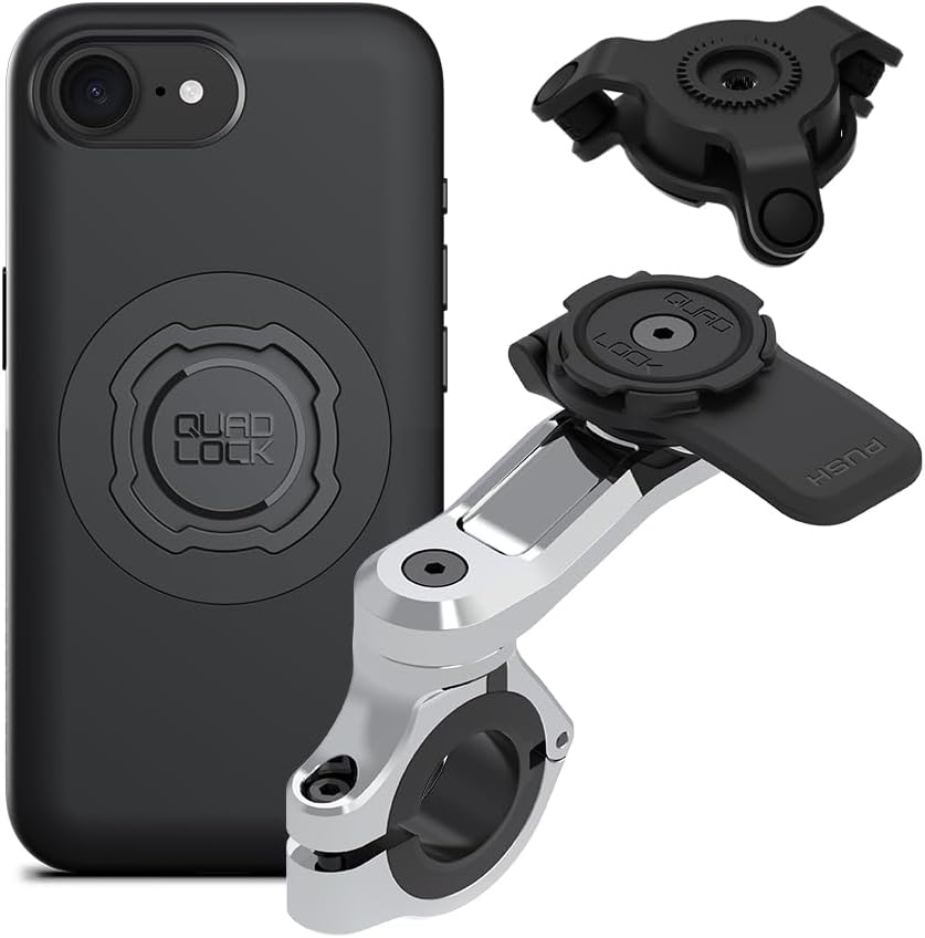 Quad Lock Motorcycle Handlebar Phone Mount PRO Chrome with Vibration Dampener and MAG Phone Case for iPhone 16e