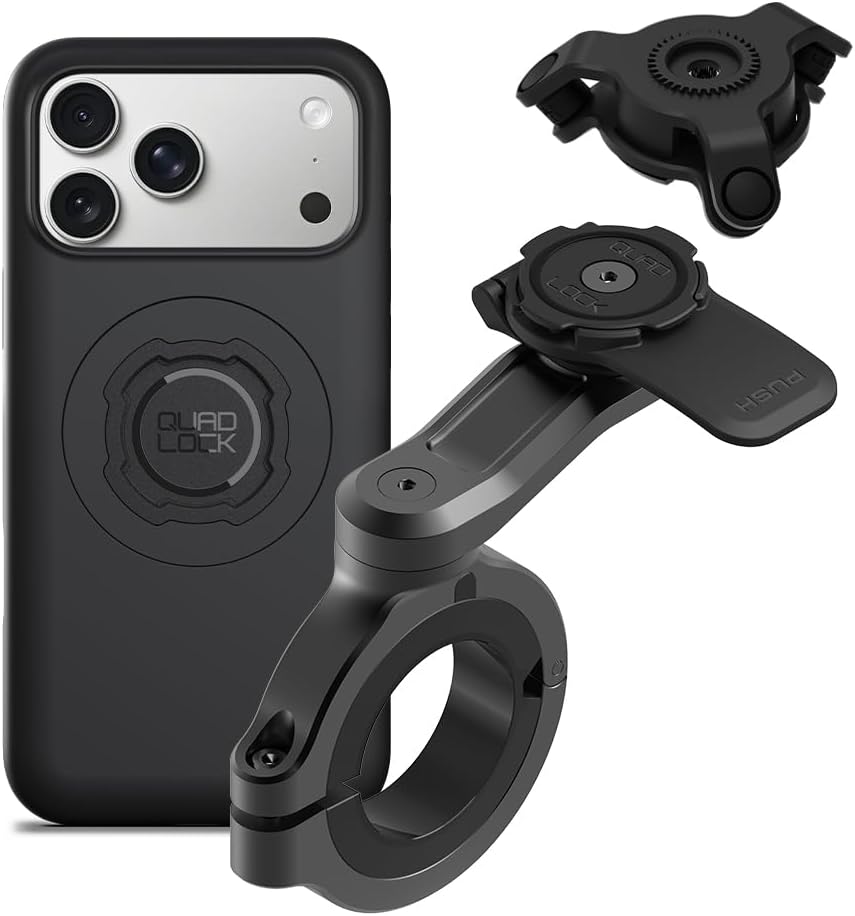 Quad Lock Motorcycle Handlebar Phone Mount PRO - Large with Vibration Dampener and MAG Phone Case for iPhone 17 Pro Max
