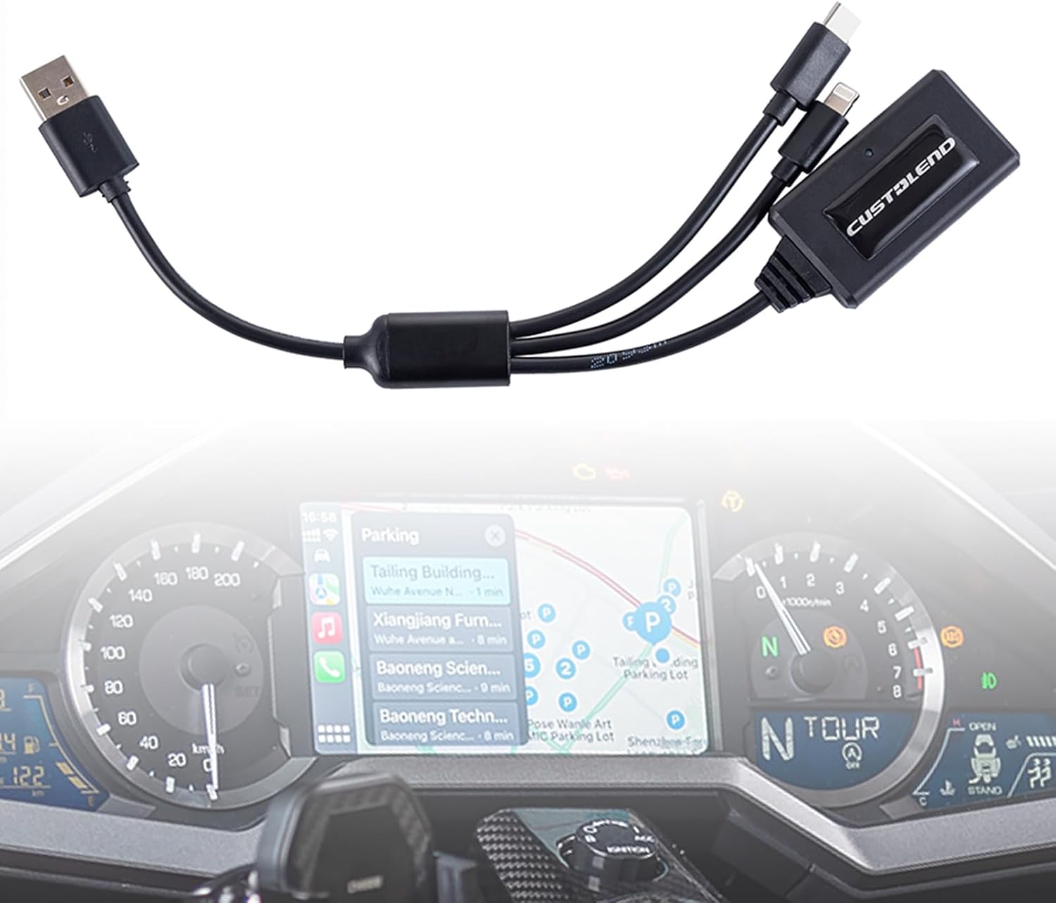 Motorcycle Indian Carplay Adapter Compatible with Harley Street Glide CVO 2018-2023, 2020-2023 Indian Road Master, 2018-2023 Gold Wing GL1800/F6B, Plug and Play
