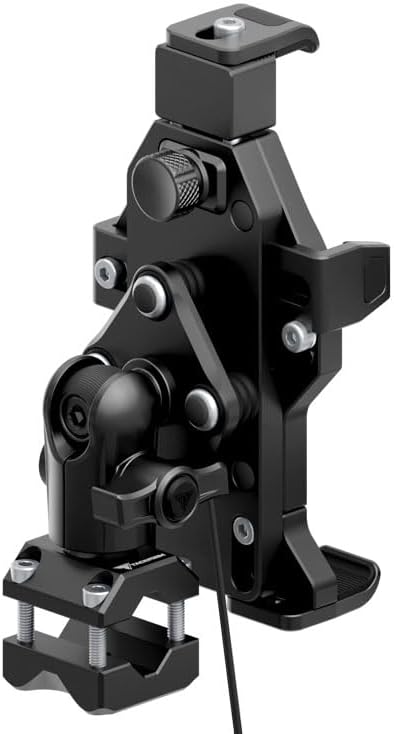 Tackform Aluminum Motorcycle Adventure Phone Mount - Vibration Dampening and Wireless Charging | Bar Clamp Fits 3/8" - 5/8" Crossbar, Headrest | Compatible with iPhone, Galaxy, More | Short Reach