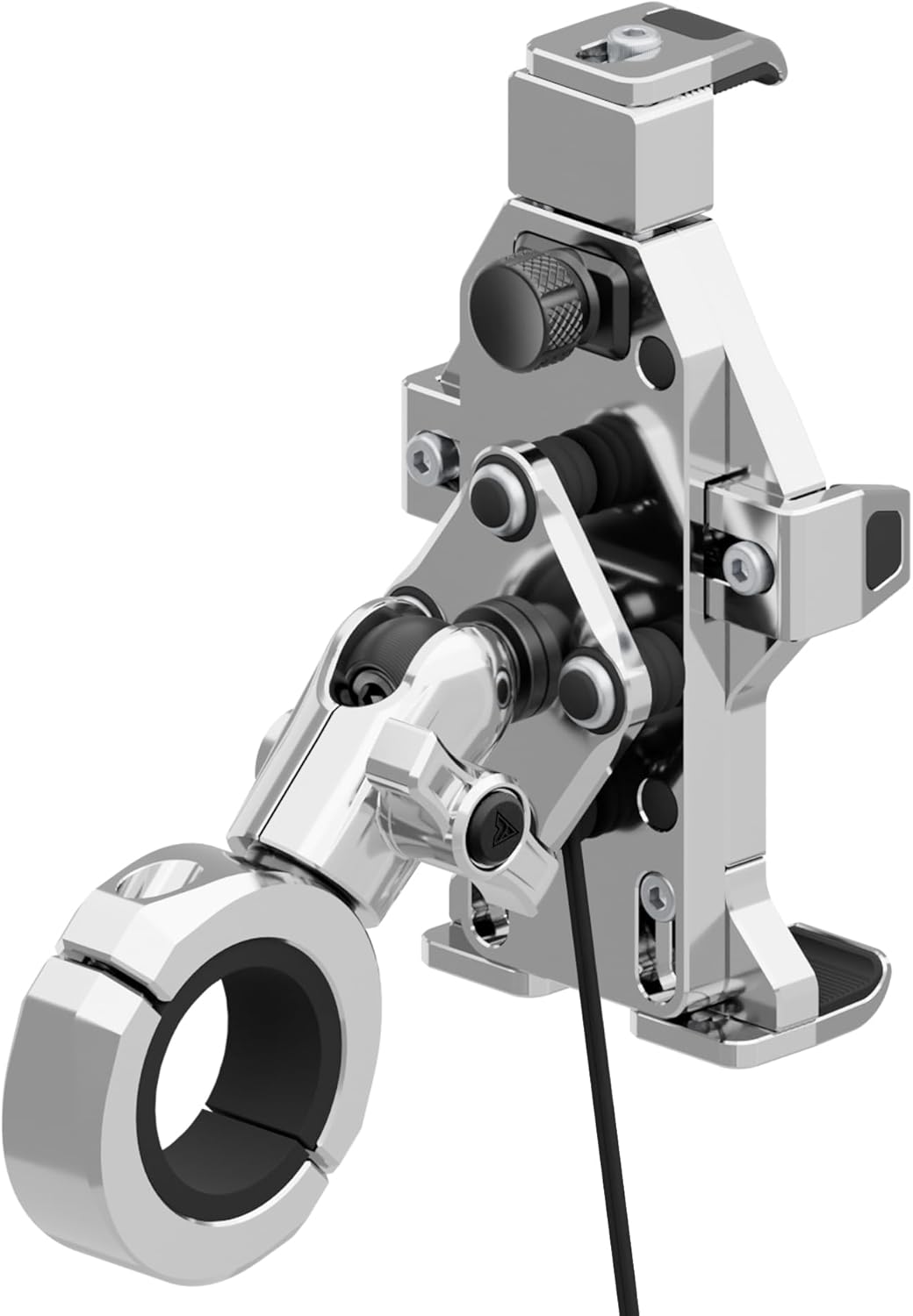 Tackform Aluminum Chrome Motorcycle Perch/Brake/Clutch Reservoir Adventure Phone Mount - Vibration Dampening and Wireless Charging | 3.5” Arm | Compatible with Harley-Davidson, Gold Wing, More