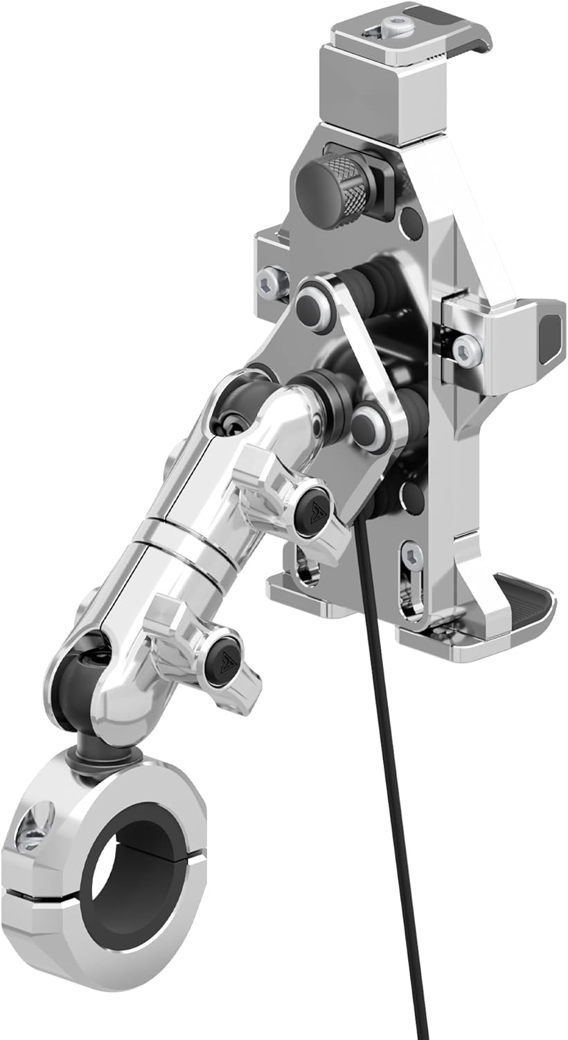 Tackform Aluminum Motorcycle Adventure Phone Mount - Vibration Dampening and Wireless Charging | Fits 1-1/4" to 1-1/2" Handlebars | Compatible with iPhone, Galaxy, More | Short Reach Arm | Chrome
