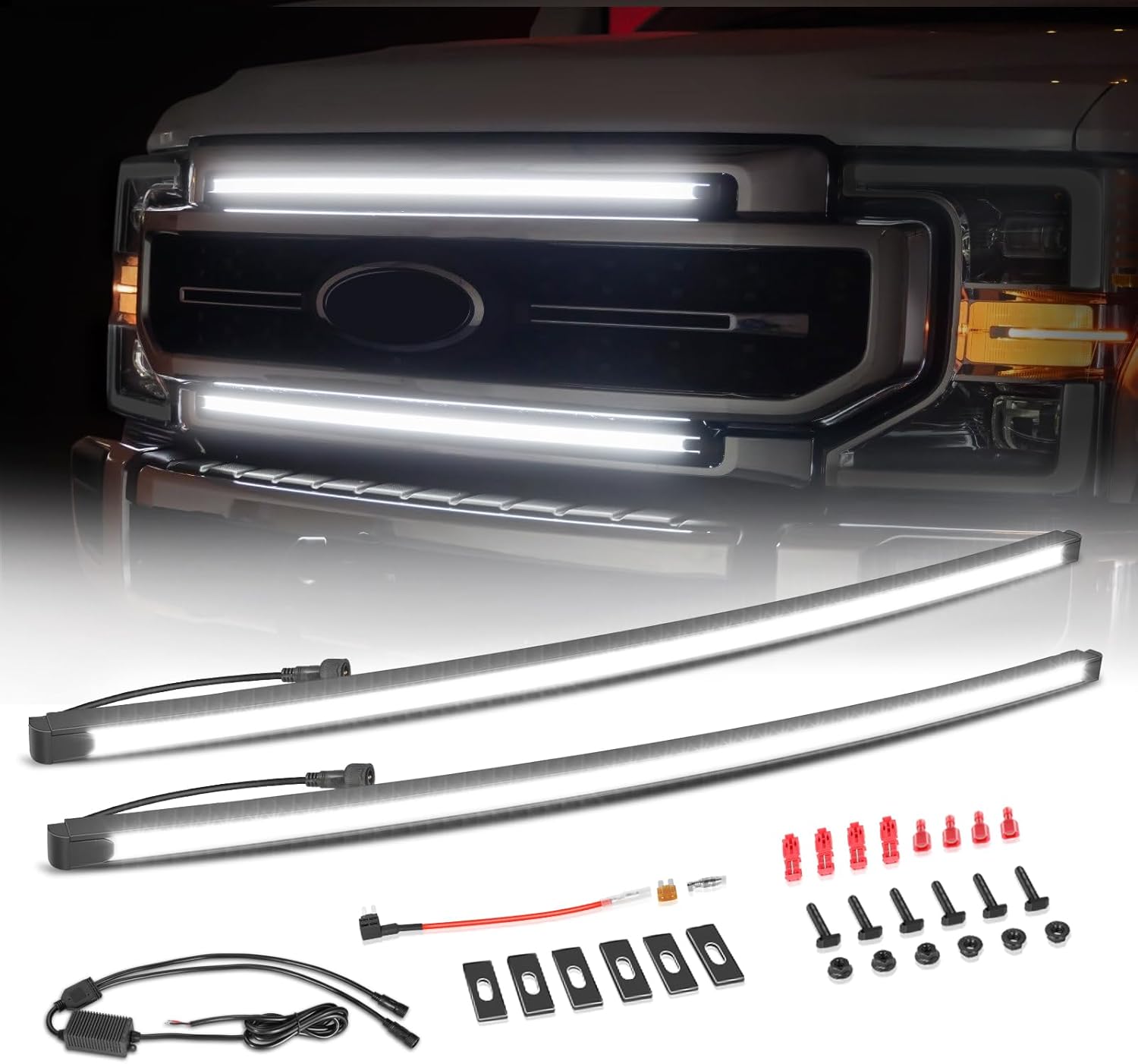 LED Grille Lights for Ford, Niking Auto 2Pcs 37'' DRL Front Grille Accent Curved Bar Light Kits for 2017-2022 Ford F250/ F350 Super Duty Truck LED Neon Grille Lights 12V