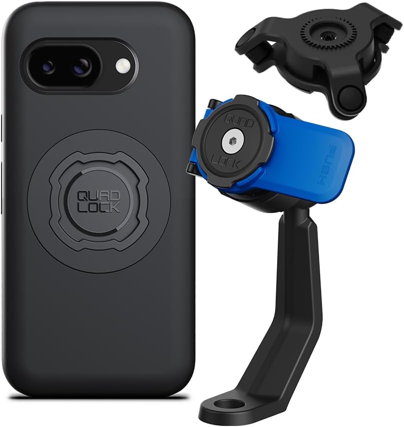Quad Lock Mirror Stem Motorcycle Phone Mount with Vibration Dampener and MAG Phone Case for Google Pixel 9a