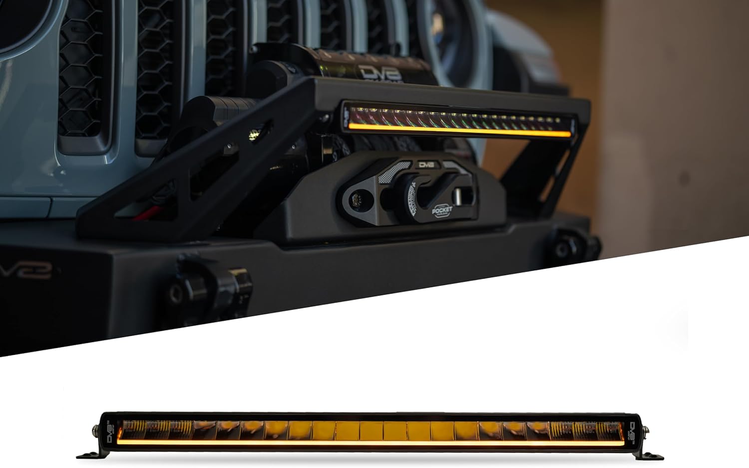 DV8 Offroad 20-Inch Halo Elite Single Row Light Bar with Accent Light | Flood & Spot Pattern | Driving & Off-Road Modes | 8,820 Lumens | 5700K Main Light | Amber or Clear Accent