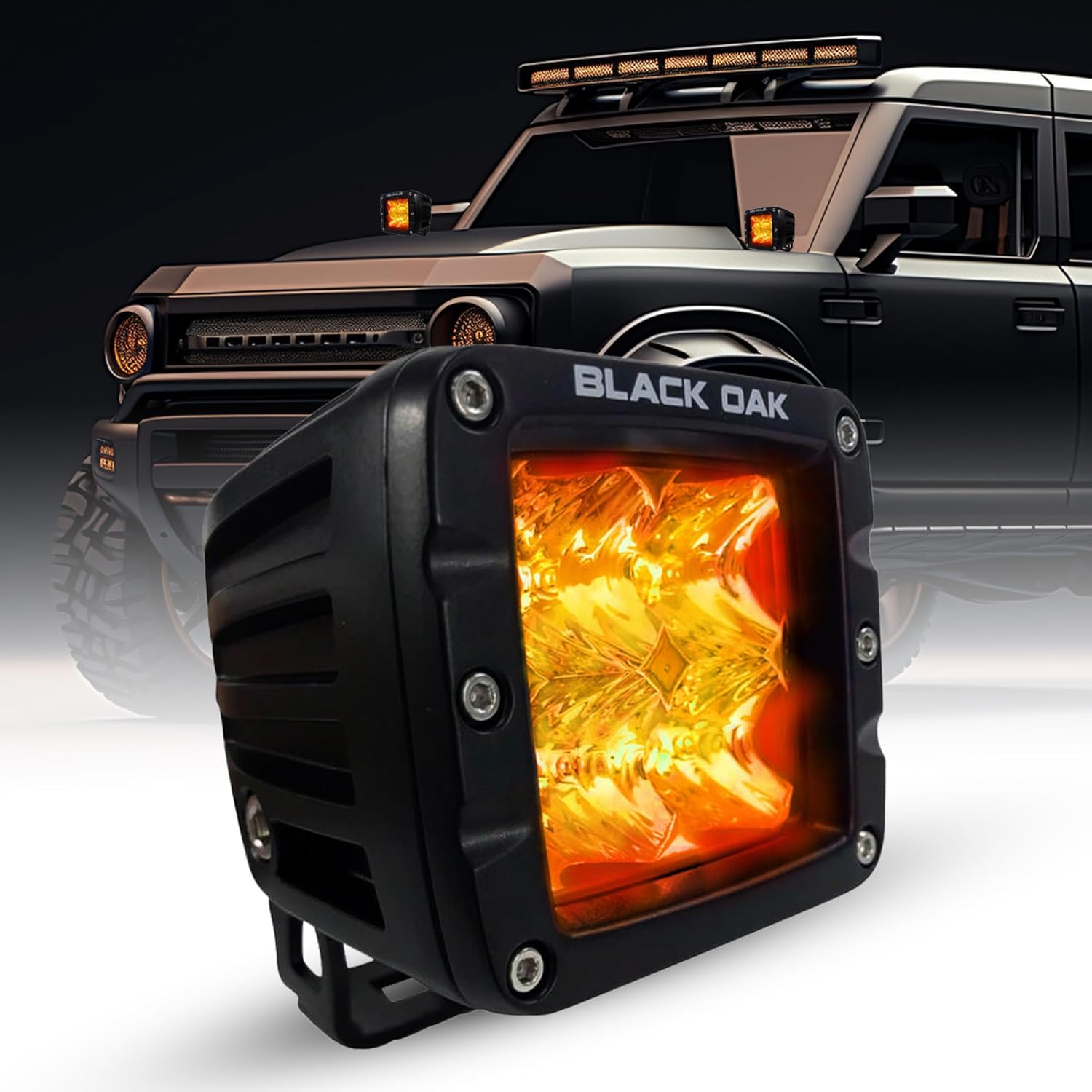 Black Oak LED Amber Fog Light - 2-Inch, 3W LED Cube, Flood Optics, Off Road Driving Light for Truck, Pickup, Universal Fit, Hardware Included