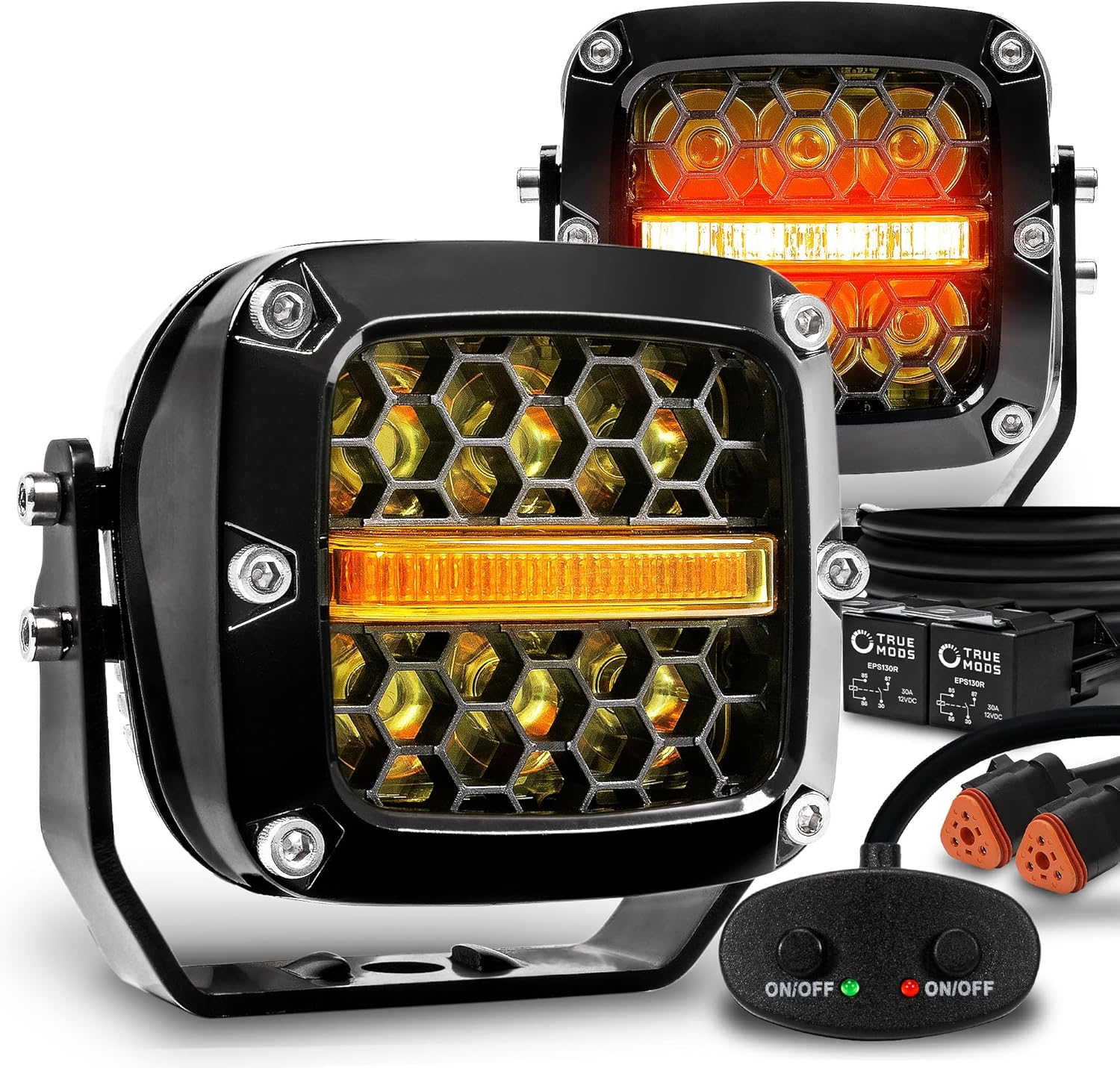TRUE MODS 3 inch LED Pod Lights with DRL; Offroad Driving Ditch Light Cube Pair Set [Amber Turn Signal] Off-Road Fog Lights for UTV ATV Jeep Wrangler SxS 4x4 Truck Pick-Up Auto Car Vehicle - Black