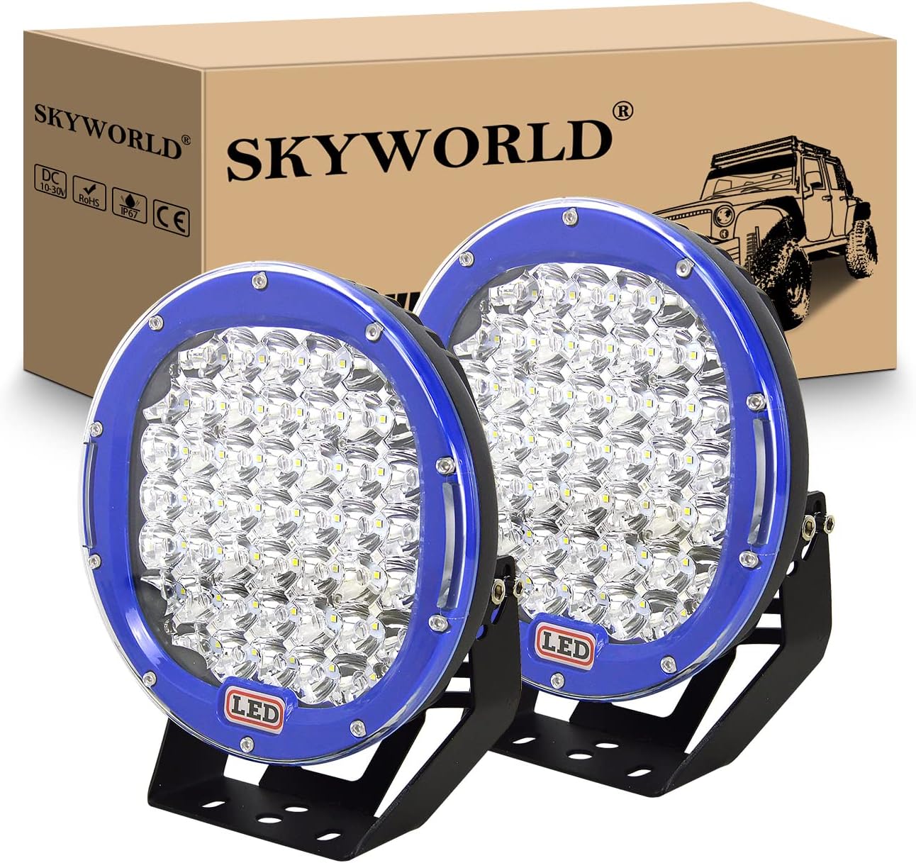 SKYWORLD 2pcs Round LED Pods Light Bar, 9 inch 225W Spot Beam Work Off Road Driving Lights Lamp Headlight Waterproof for Car Truck SUV ATV Tractor Boat, 6000K White Blue Case