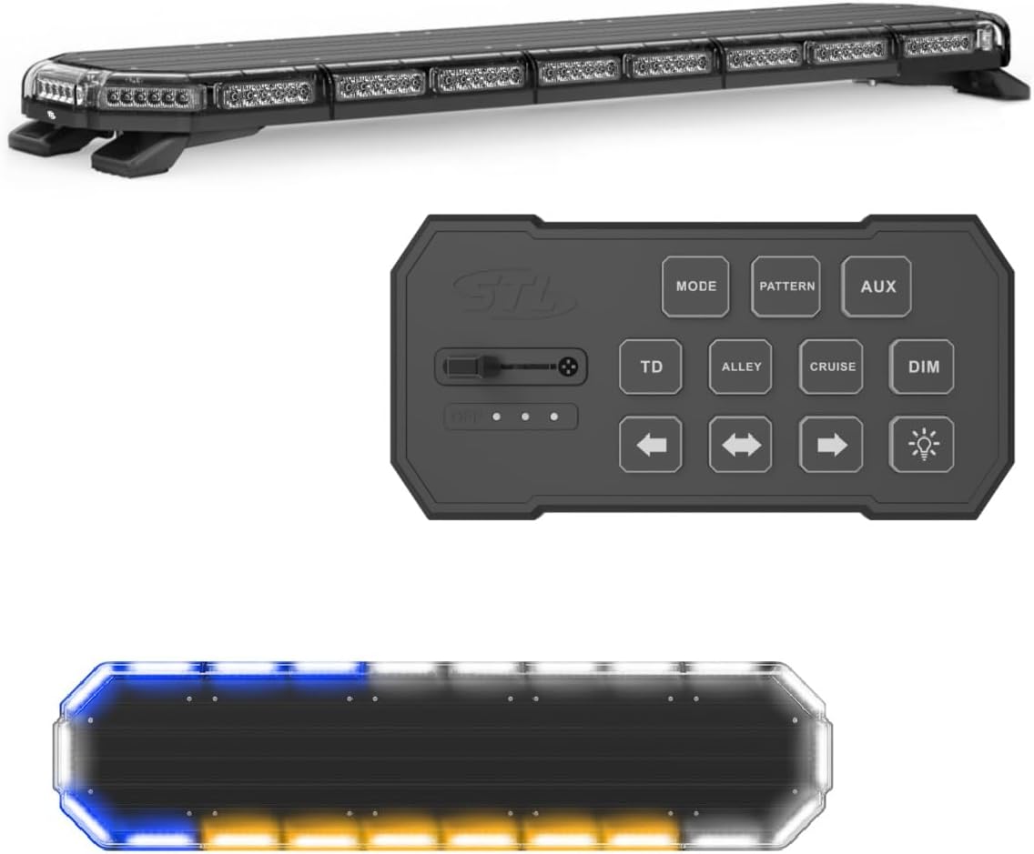 SpeedTech Lights K-Force Elite 47 Full Size LED Strobe Light Bar – 132 LEDs 396W Roof Mount Emergency Warning Light for Tow Trucks, Fire, EMS, Plows & Wreckers (Blue/Clear)