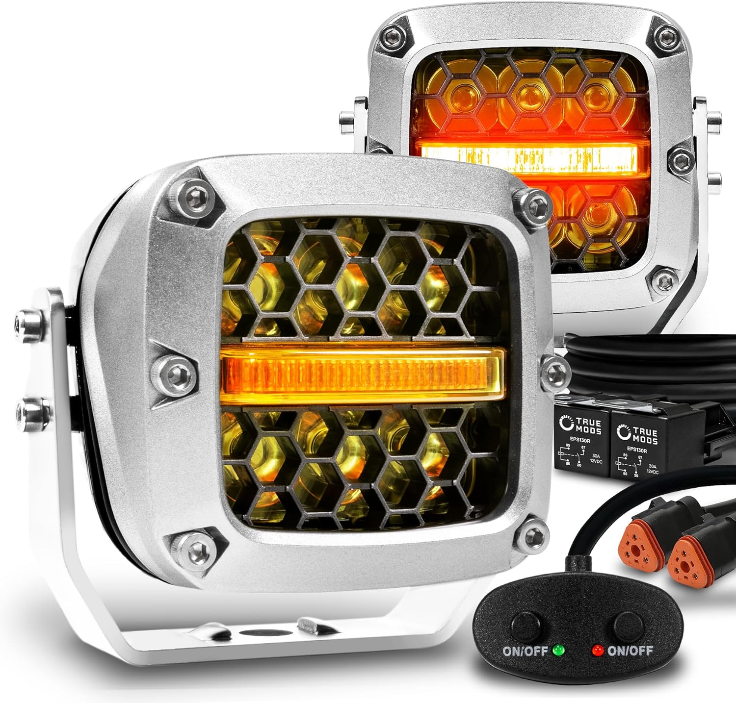 TRUE MODS 3" 120W Amber LED Pods Offroad Driving Light Cube Pair Set [Yellow Turn Signal Marker Light] Off-Road Lights for UTV ATV Jeep Wrangler SxS 4x4 Truck Pick-Up Auto Car Vehicle - Chrome