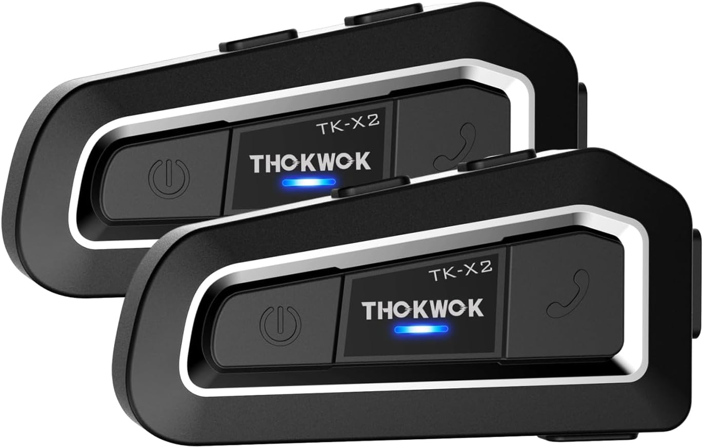 Motorcycle Bluetooth Headset Up to 3 Riders, TK-X2 1000m Helmet Bluetooth Intercom with Noise Cancellation/FM Radio/Stereo Music, Universal Communication System Headphones for ATV/Ski (Pack 2)