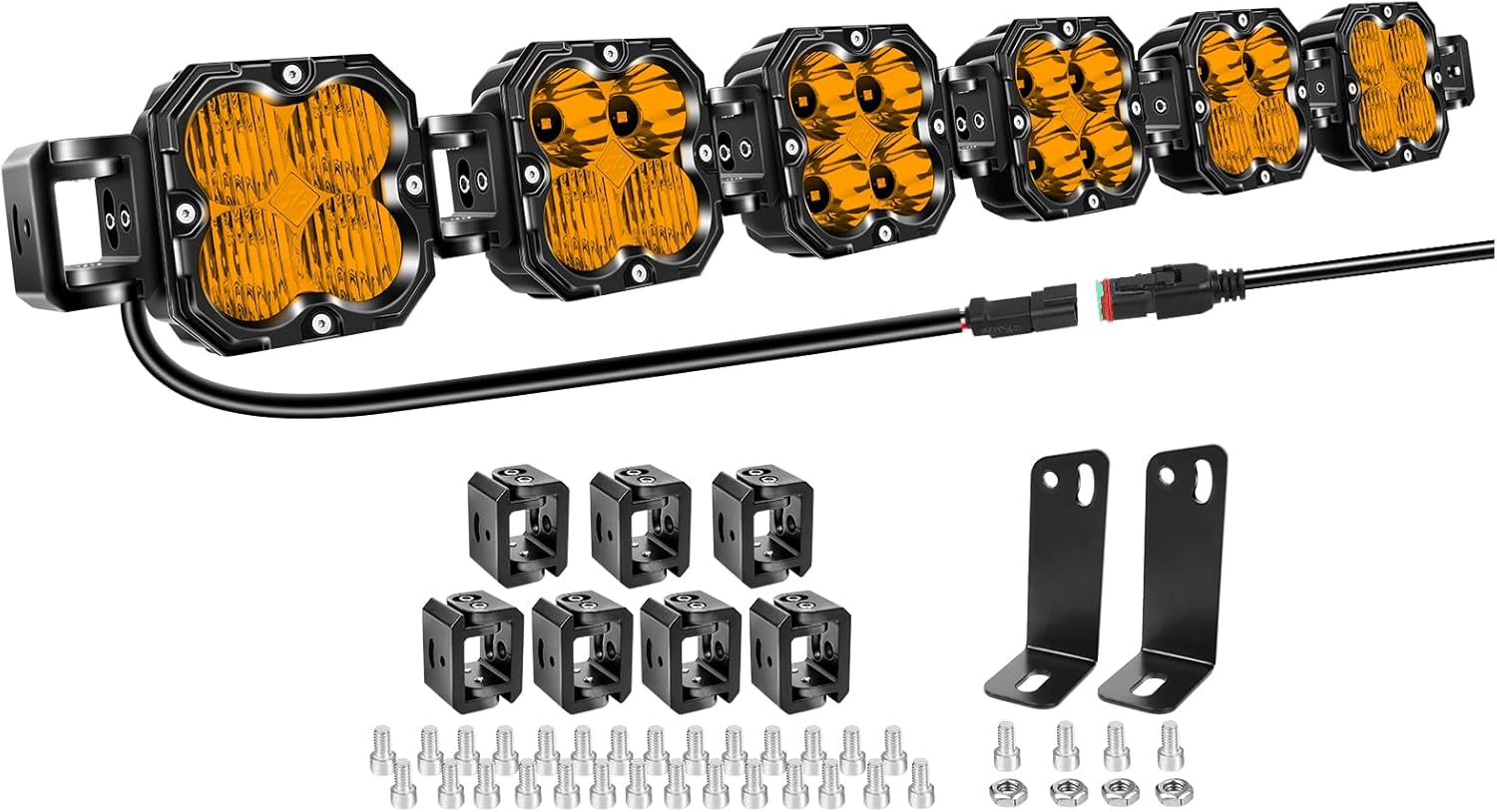 Willpower 40" 180W 18000LM LED Work Light Bar with DT Connector, Square Off Road Driving Lights 12V 24V Fog Lamps for Car Vehicle Truck 4x4 Boat Tractor, 3000K Amber, Waterproof Headlight, Spot Flood
