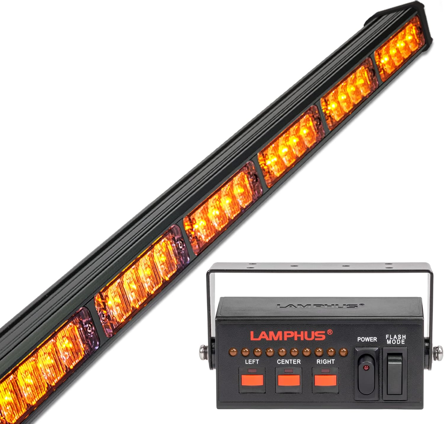 LAMPHUS SolarBlast 29" 24W Amber LED Traffic Advisor Light Bar with TA Controller Box - 12V Waterproof Directional Flashing Emergency Warning Lightbar Lights for Work Truck Vehicles Car