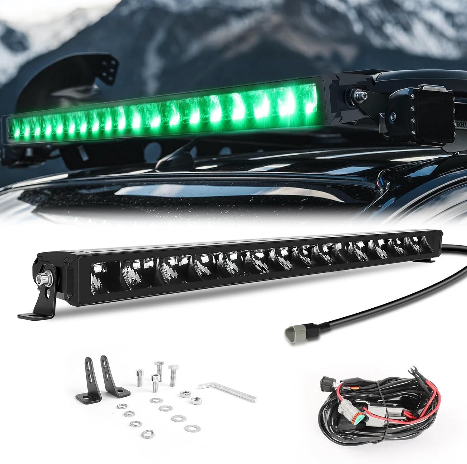 30” Rivetless LED Light Bar with Green DRL – Off-Road Driving Light, Up to 18,000 Lumens, 6000K White Light, 1640 ft Long Distance, IP68 Waterproof, 12V Wiring Harness for Truck, Pickup, SUV, ATV, UTV