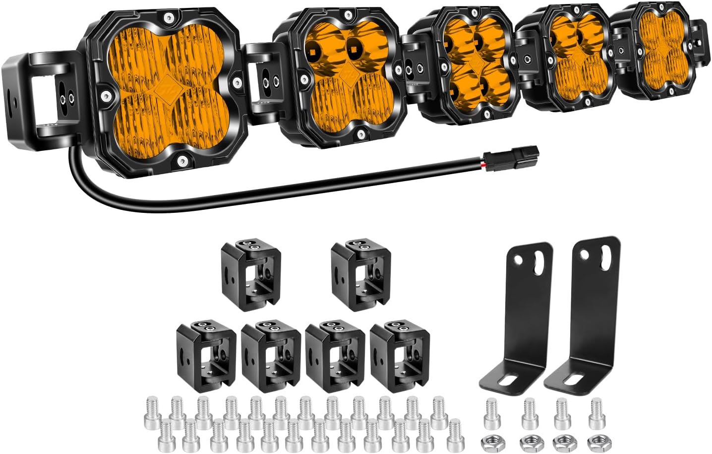 Willpower 33 inch 150W Amber Straight Curved Adjustable & Linkable LED Light Bar with Wiring, Spot Flood Beam Off Road 4X4 Driving Fog Lights for 12V 24V Vehicle 5WD Car UTV SUV Truck Tractor Trailer