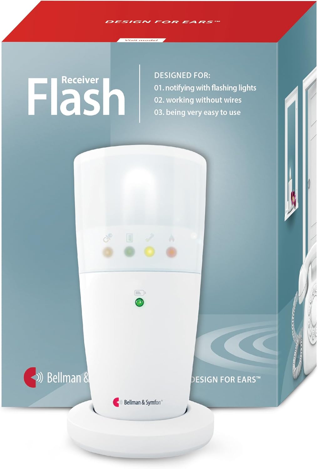 Bellman & Symfon Flash Alert Receiver - Visit Smart Home System Component – Bright Notification Device for Deaf or Hard of Hearing – Assisted Living Emergency Technology for Home Safety