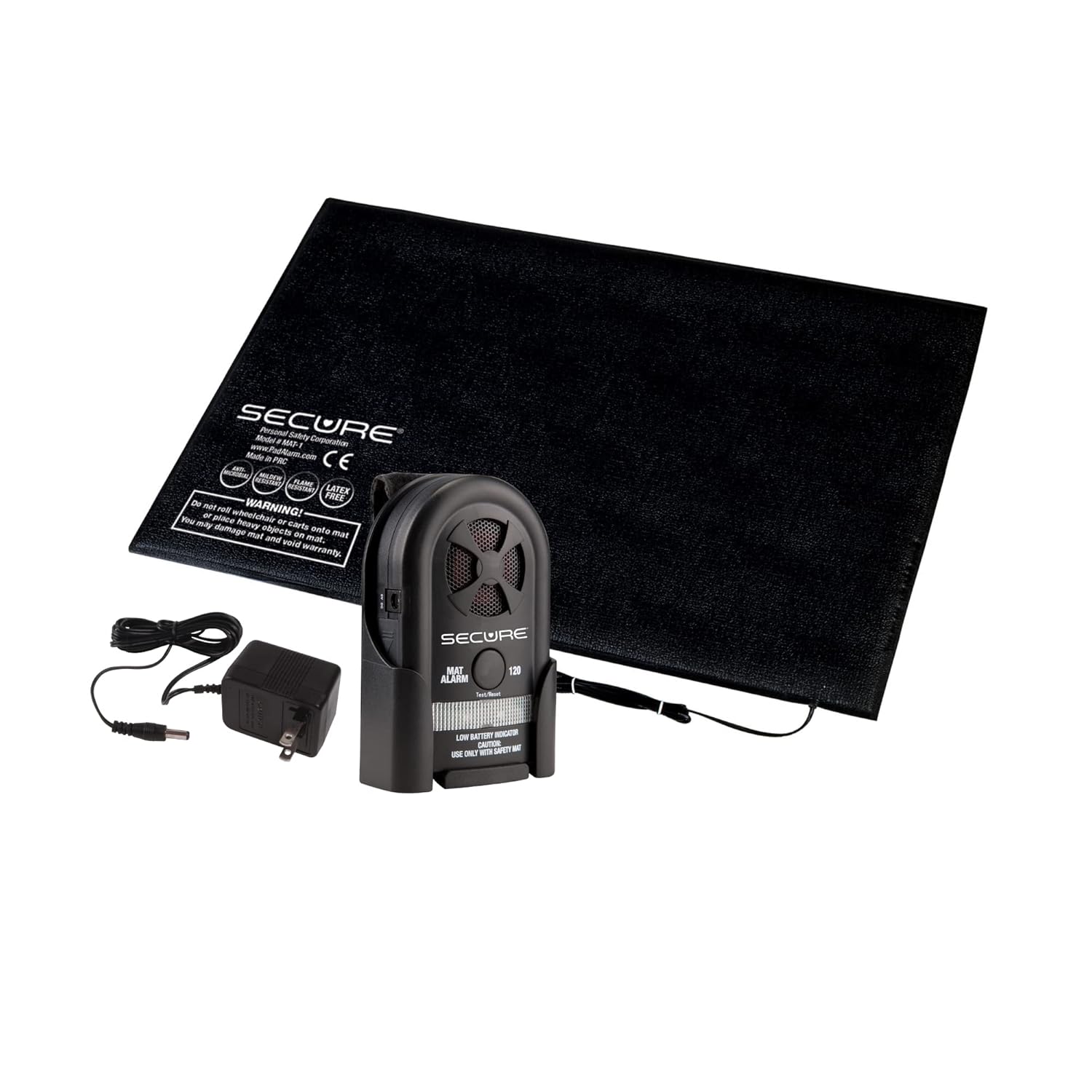 Secure Safety Solutions Bed Alarm for Elderly Dementia Patients - 24x36 Floor Mat Sensor, 80-120 dB Alarm, Adapter - Caregiver Alert System, Fall Prevention for Seniors, Adults, Hospital, Nursing Home