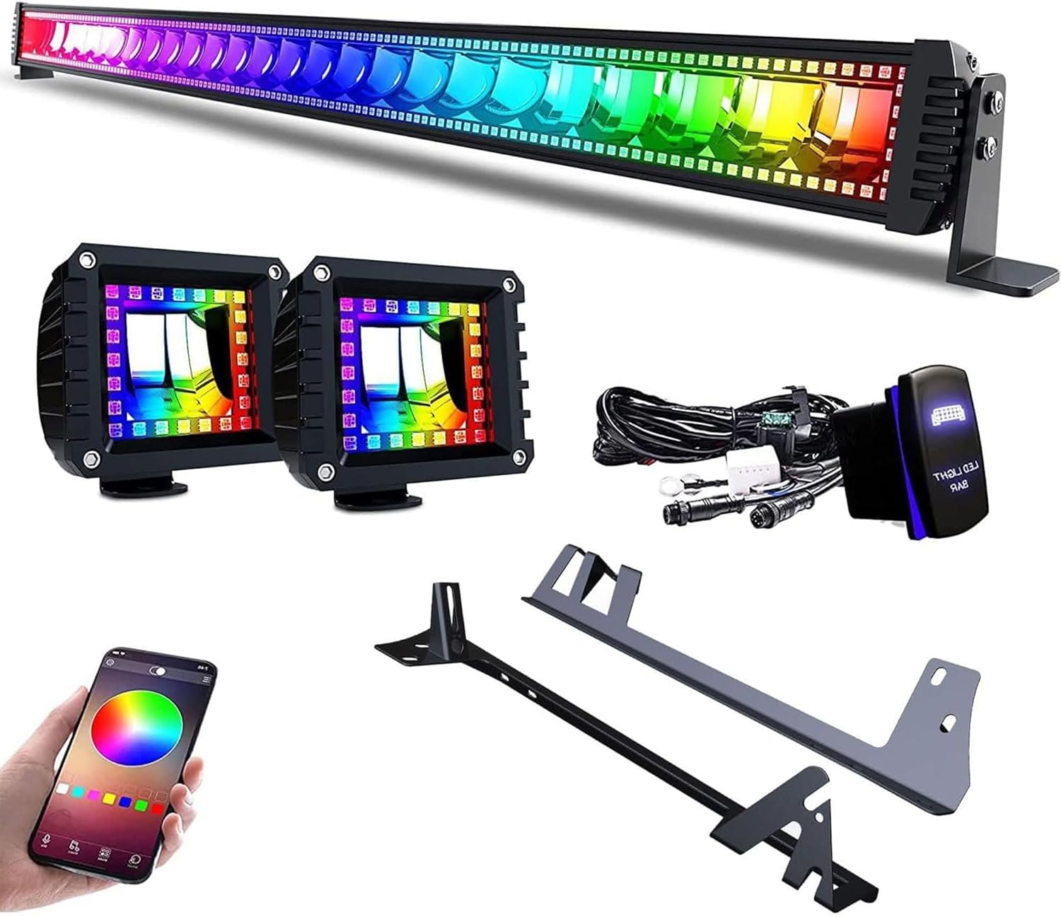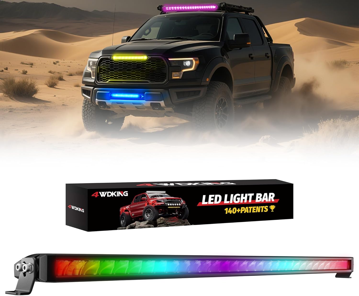 4WDKING Patented RGB Offroad LED Lights Driving/Fog/Pod Lights LED Bar for Trucks/Cars/Boat/ATV/UTV Super Bright IP68&IP69K Multi-Color Working Beam Lamp (32 inch)