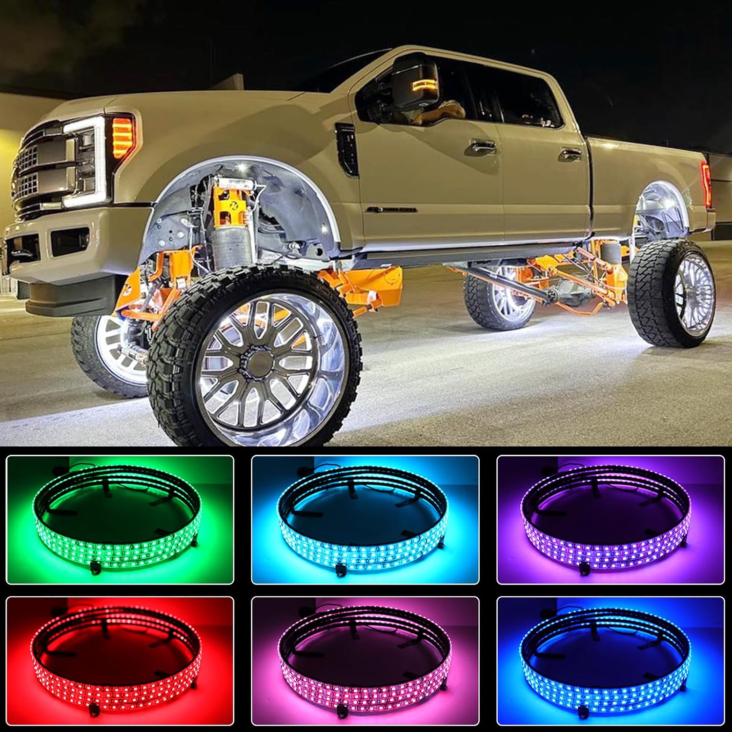 4PCS 15.5" RGB LED Wheel Ring Lighting Kit with APP & Remote Control, Car Rim Lights Compatible with Chevy Silverado GMC Sierra Chevrolet Camaro Dodge Ram Polaris Slingshot F150 Jeep