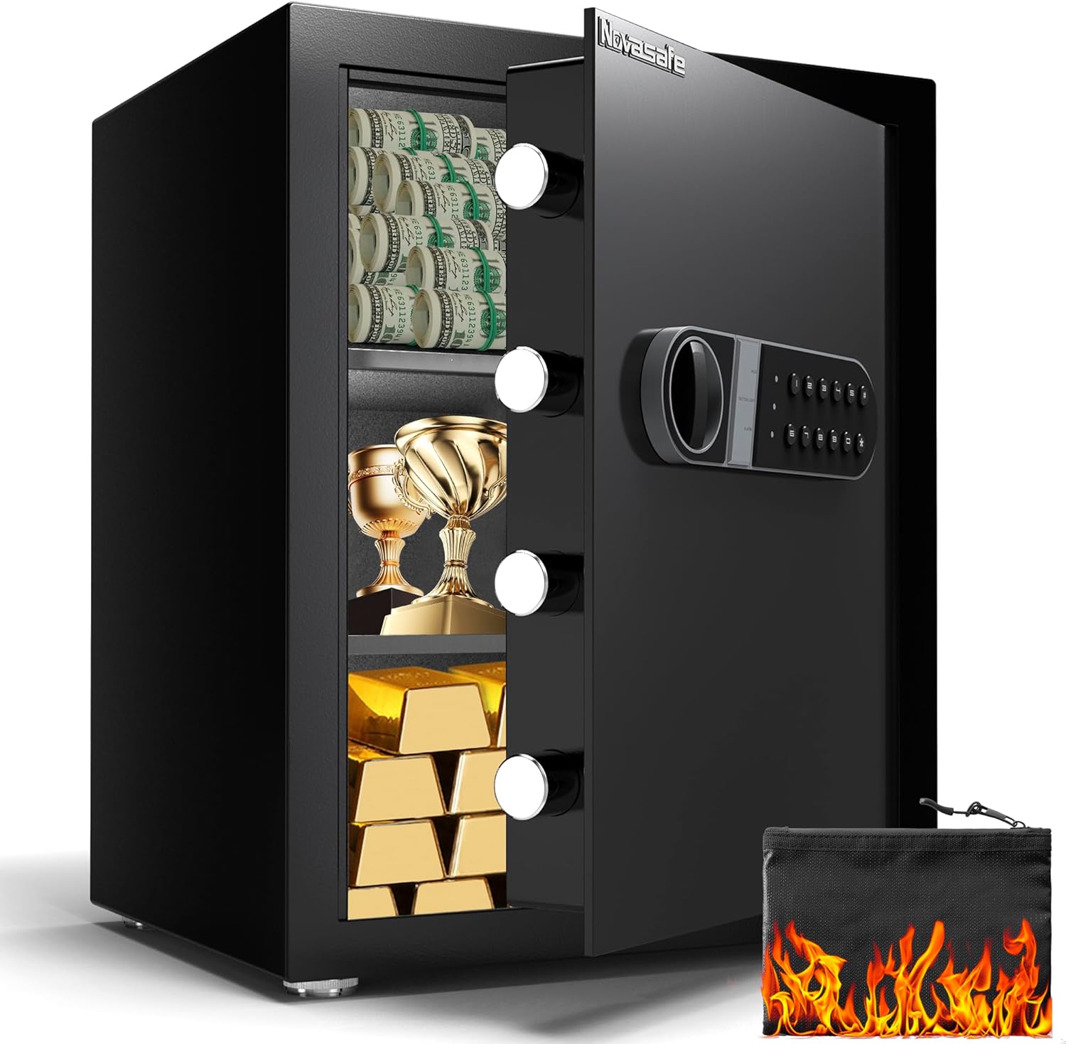 Safe Box, Home Safe with Key & Fireproof Waterproof Bag, 2.0 Cu Ft Money Safe for Cash Office Cabinet, Anti-Theft Safety Box, Digital Electronic Keypad, Dual Alarm System