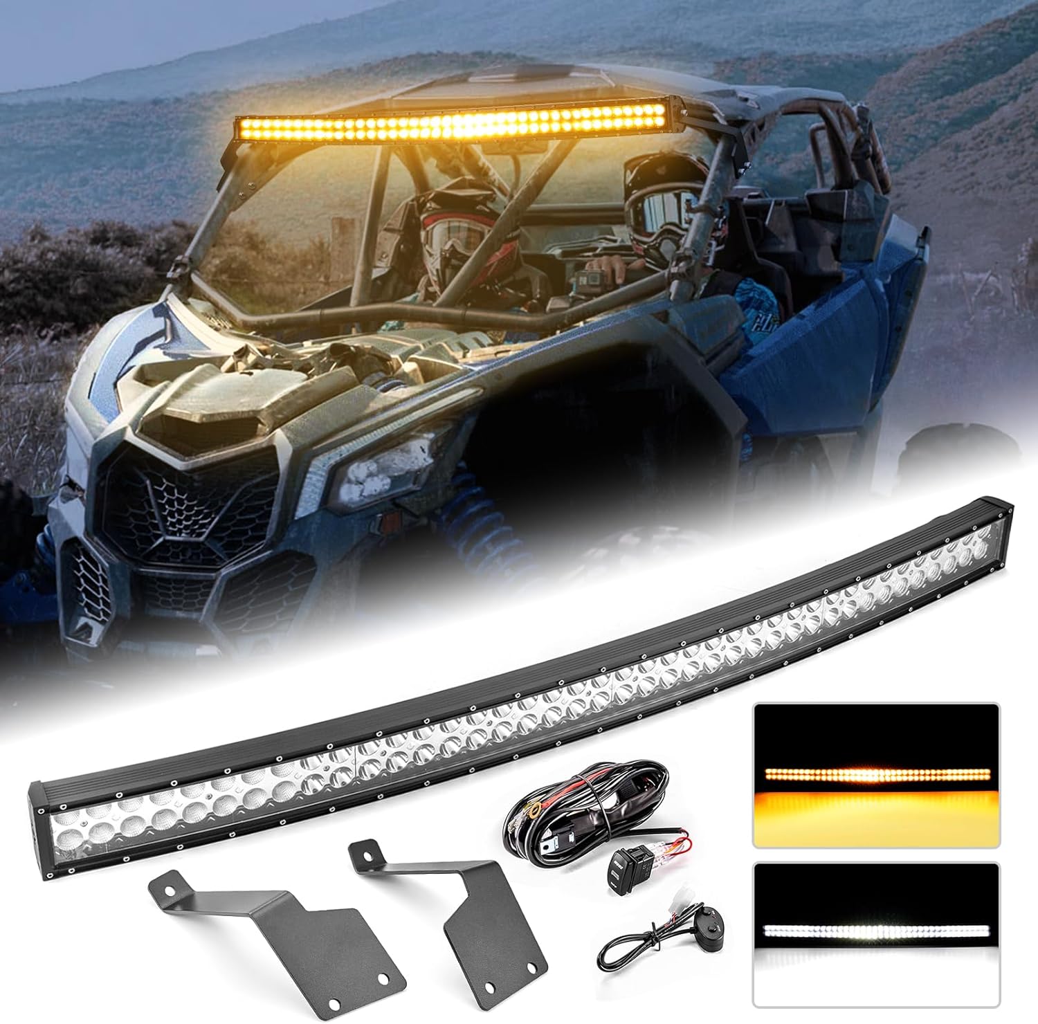 WeiSen 42" 240W Amber & White LED Curved Light Bar with Memory Function Wiring Harness Rocker Switch and Light Bar Mounts Compatible with Can am Maverick X3 and X3 Max All Models 2017-2024