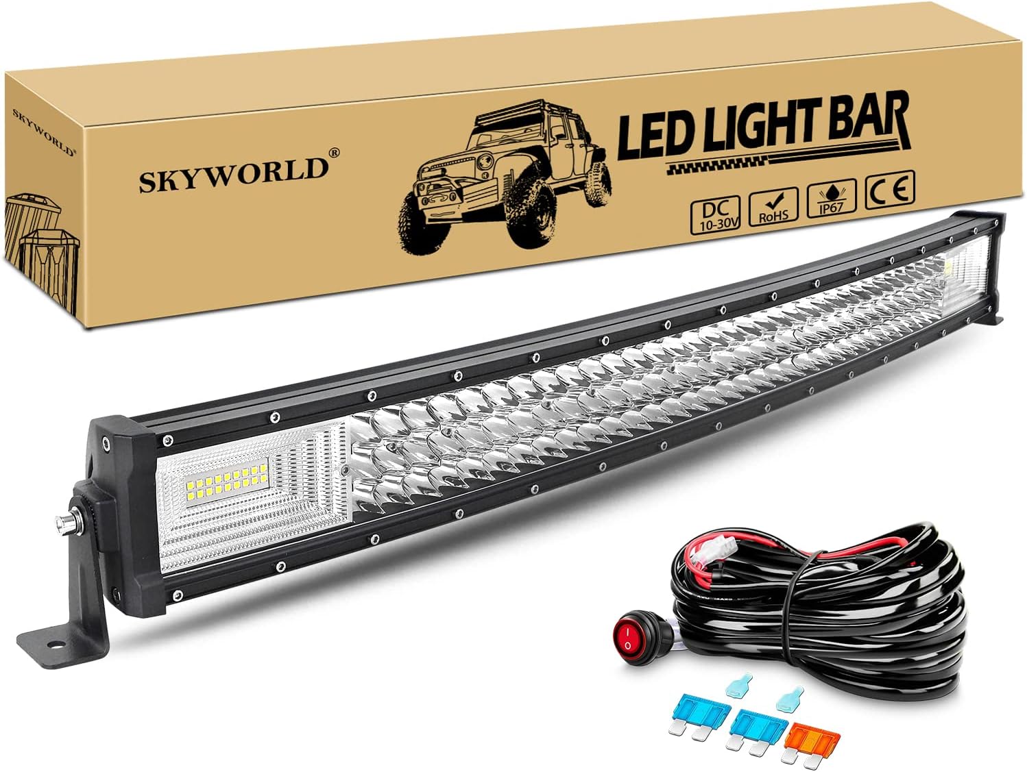 SKYWORLD 32 inch 405W Slim Curved LED Light Bar Spot Flood Combo Beam LED Off Road Work Driving Lights Fog Lamp with 12V Toggle Wiring Harness Kit for Car Tractor Truck 4x4 ATV UTV Vehicles Boat