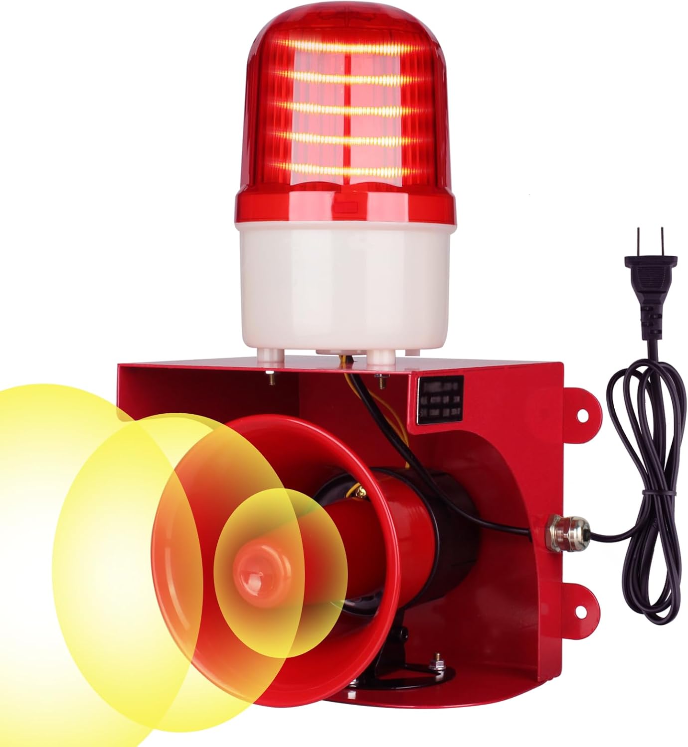 AC110V Industrial Siren Alarm Strobe Light-120dB Loud Horn&Red Beacon Warning Light,Waterproof Indoor/Outdoor Safety Alarm for Emergency,Factory,Office,Fires,Tornado,Intruders,Animal Deterrent