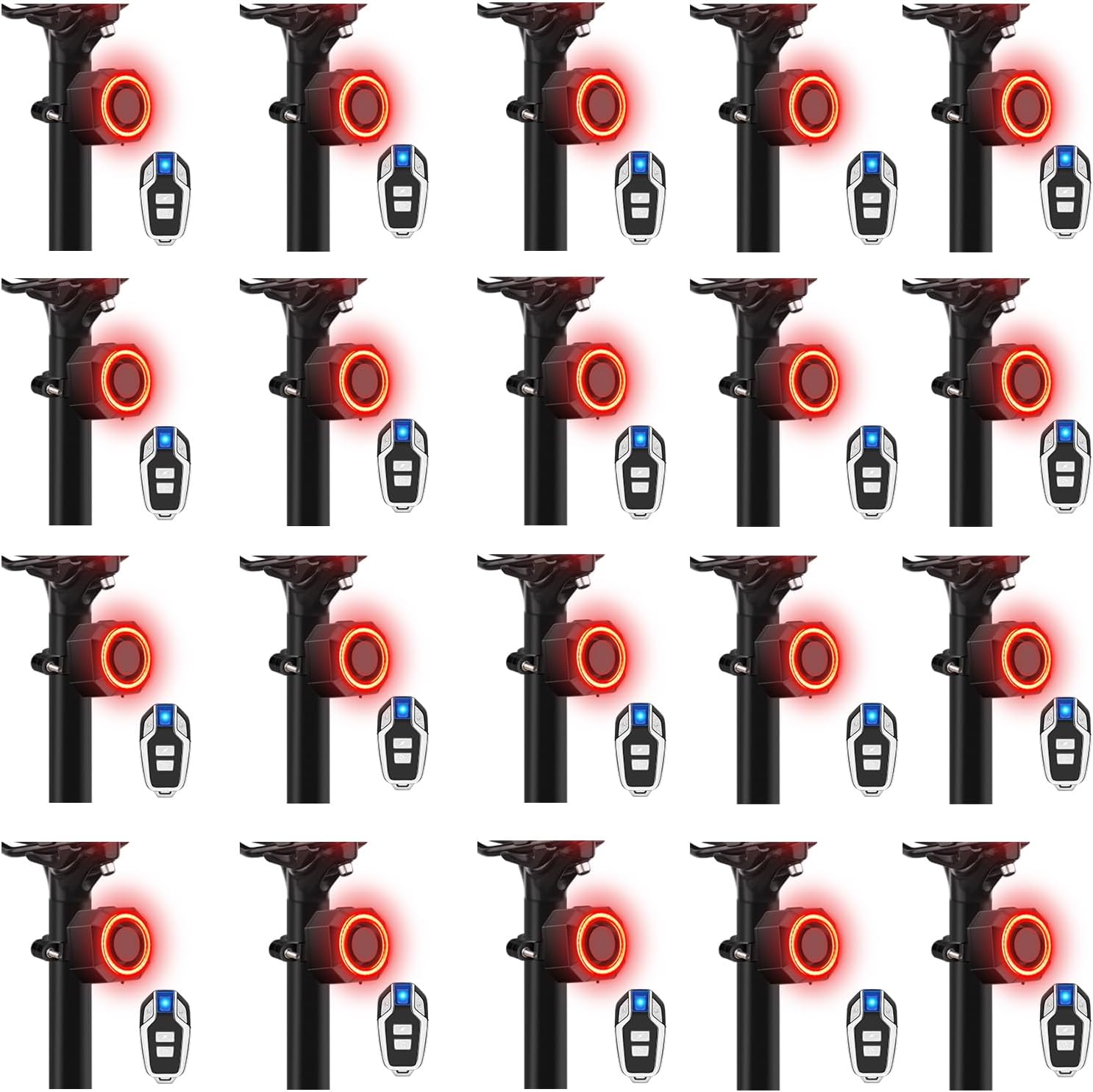 Anti Theft Bike Tail Light Alarm, Bike Alarms for Ebikes, 4 Lighting Modes, Auto On/Off, USB Rechargeable Safety Red LED Taillight Waterproof Road High Lumen COB Cycling Back Light, 20PK