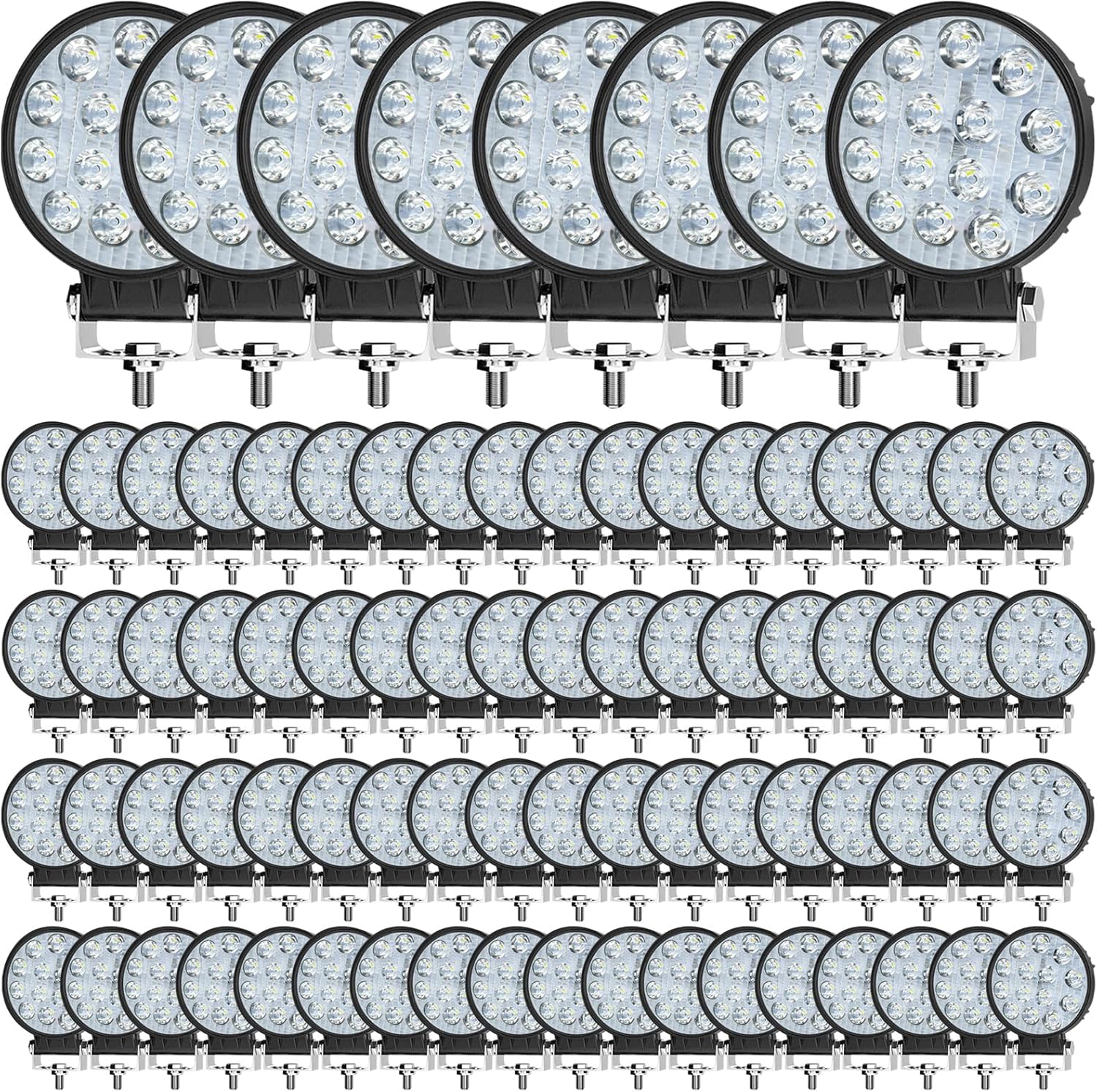 LED Pod Lights MUVKQC 4.5 Inch 42W Round LED Work Lights 42W 10000lm 12V 24V Spot Beam Offroad Driving Light Bar for Truck Tractor Trailer Excavator Pickup Golf Cart Mower ATV UTV (80pcs)