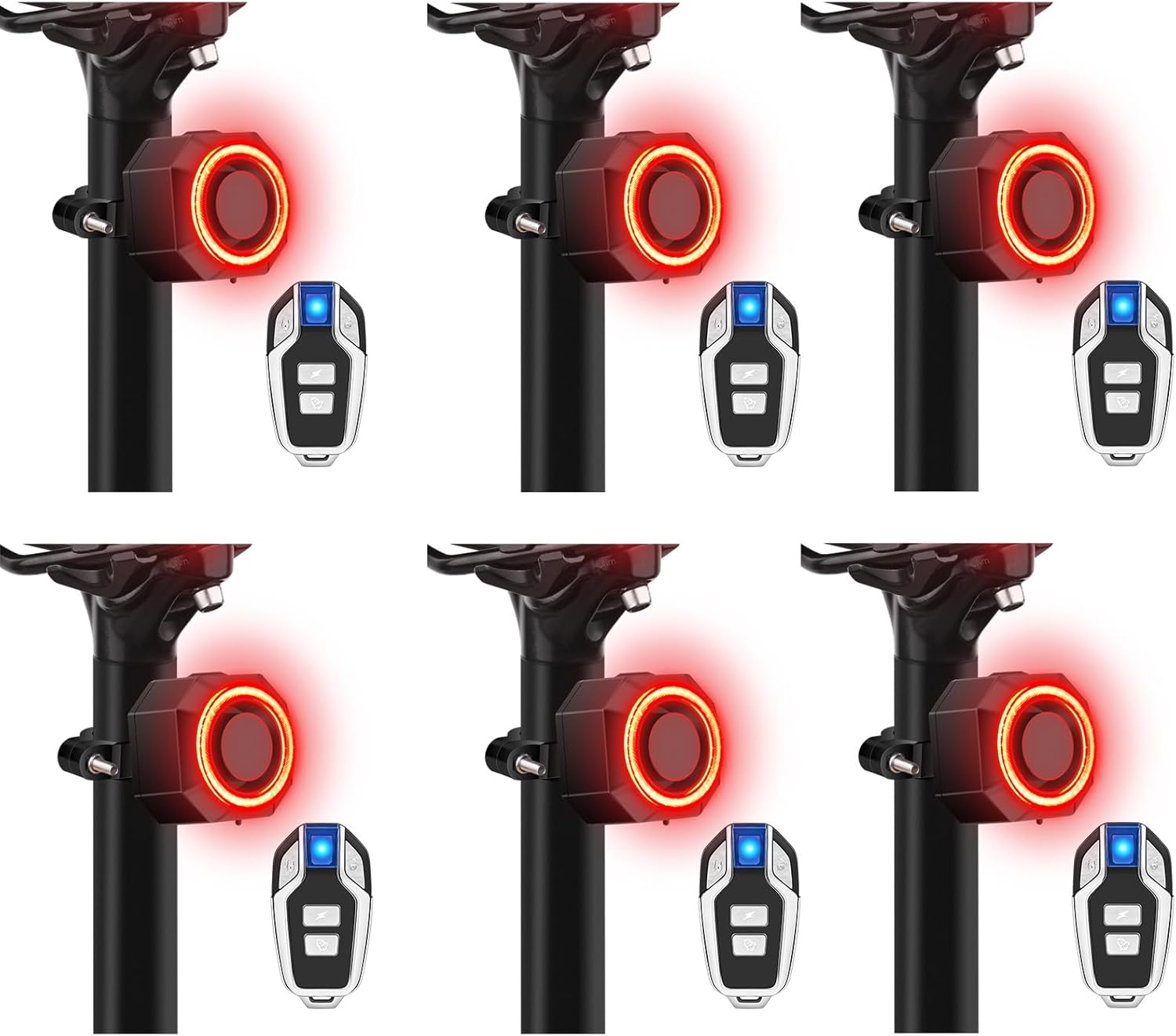 Anti Theft Bike Tail Light Alarm, Bike Alarms for Ebikes, 4 Lighting Modes, Auto On/Off, USB Rechargeable Safety Red LED Taillight Waterproof Road High Lumen COB Cycling Back Light, 6PK