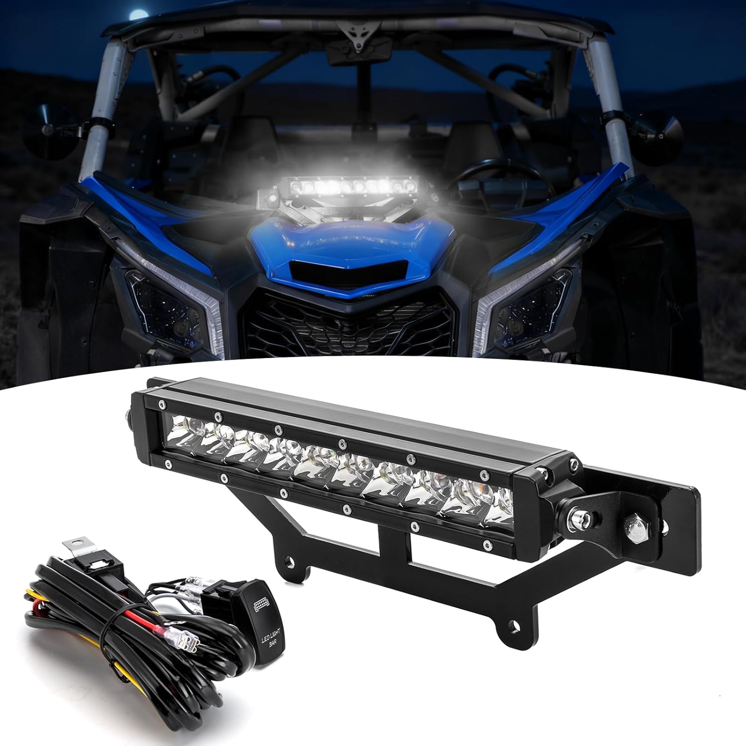 Wsays 11" Straight LED Light Bar and Shock Tower Light Mount Bracket with Wiring Harness Kit Compatible with Can Am Maverick X3 and Max 2017-2023