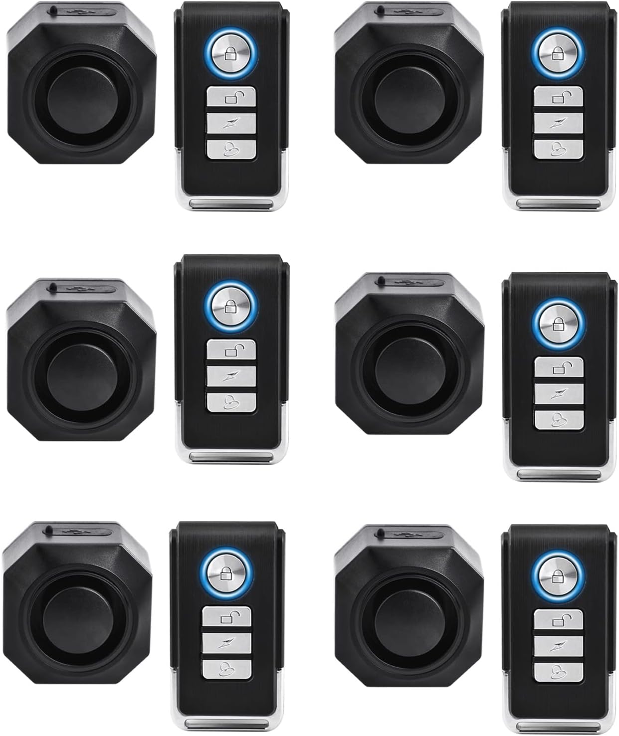 110dB Bike Alarm Wireless Vibration Motion Sensor with USB Charging Ports, Anti-Theft Bicycle Motorcycle Alarm with Remote, Waterproof, 6SET
