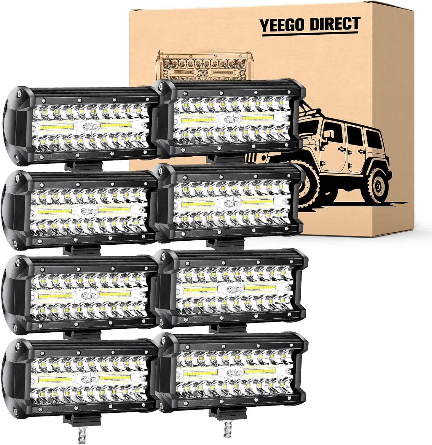 YEEGO DIRECT 7 Inch Led Light Bars, 480W 48000lm Off Road Lights Spot Flood Beam,Waterproof LED Tractor Lights Fog Work Lights for Truck UTV ATV SUV Tractor Boat (8 Pcs)