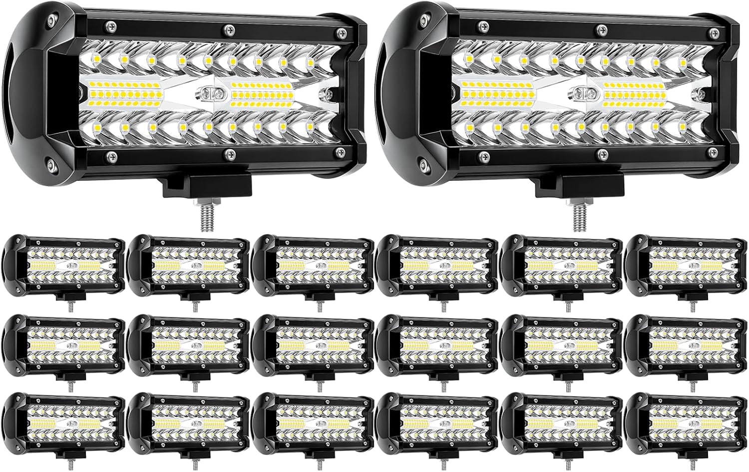 7Inch Light Bar MUVKQC 120W 12000LM LED Pods Lights Spot&Flood Combo Off Road/Fog/Driving Work Light for Truck Boat UTV ATV Lawn Mower Golf Cart E-Bike (20pc-7inch 120w Light bar)
