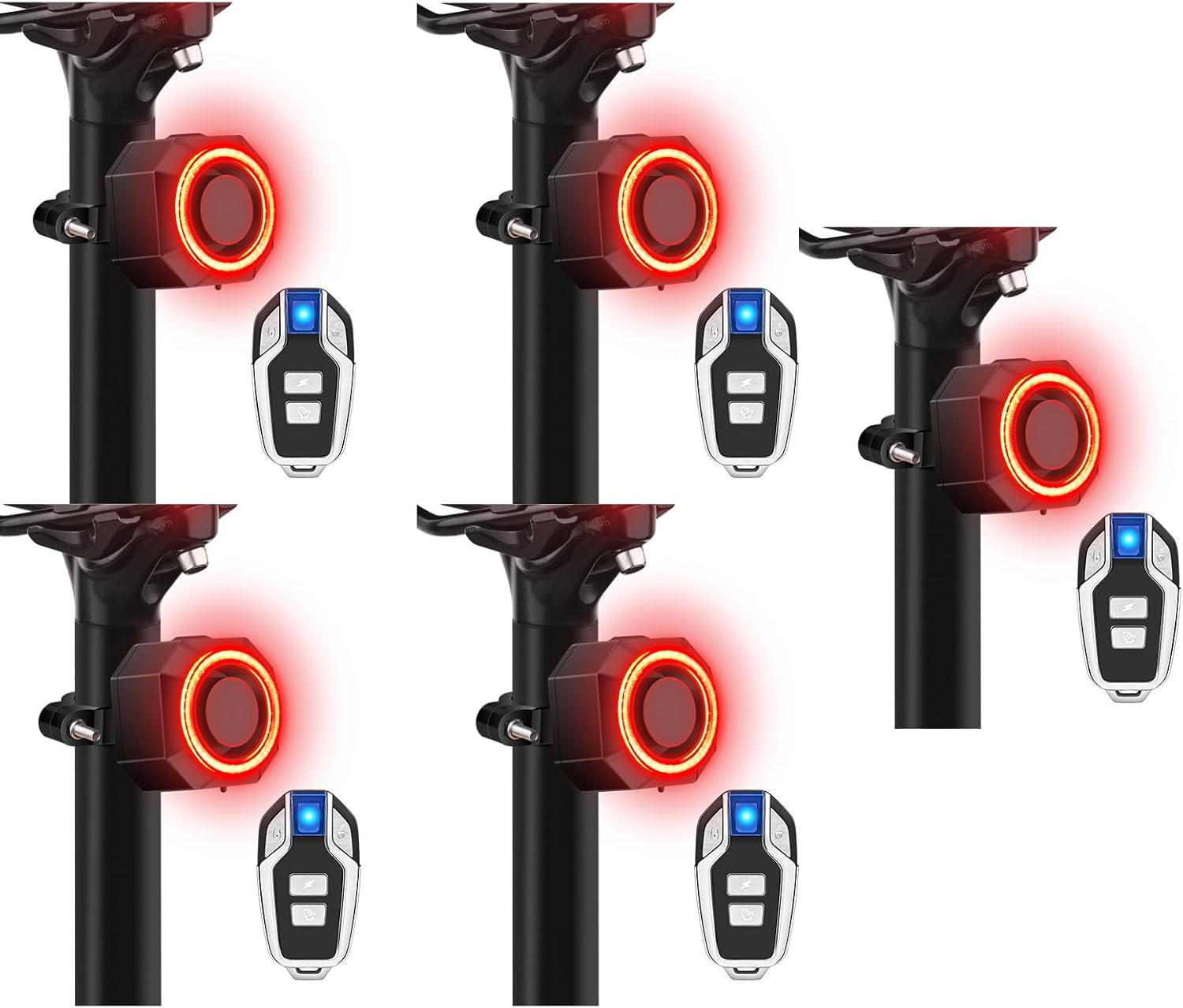 110dB Bike Alarm Wireless Vibration Motion Sensor with USB Charging Ports, Anti-Theft Bicycle Motorcycle Alarm with Remote, Waterproof, 5SET