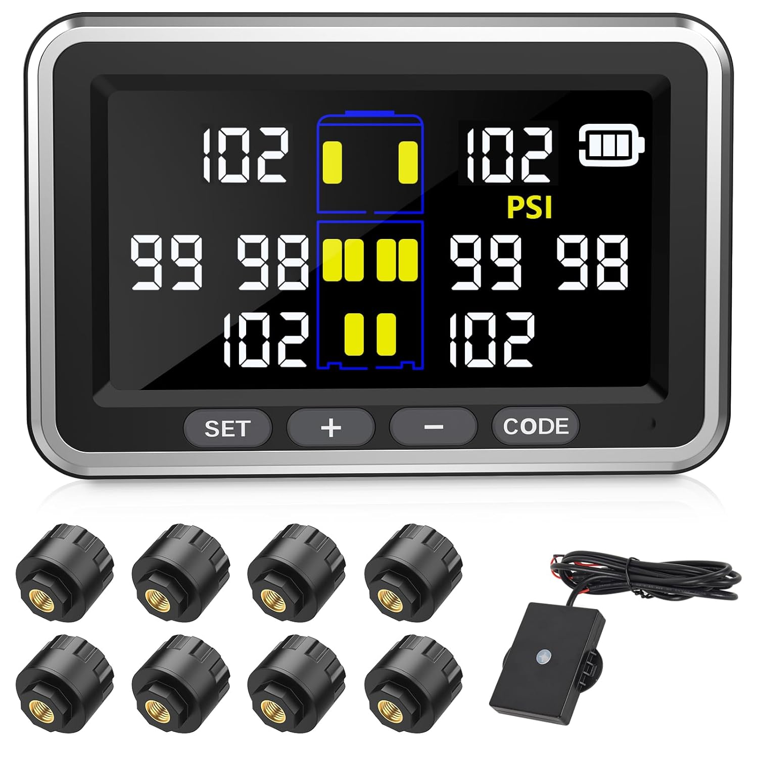 Truck/RV Tire Pressure Monitoring System, (0-199PSI) 4.5-inch Screen TS10 Trailer High Pressure TPMS with 8 Sensors, Color Display 6 Alert Modes, Signal Booster,Fifth Wheel (8 Sensors)