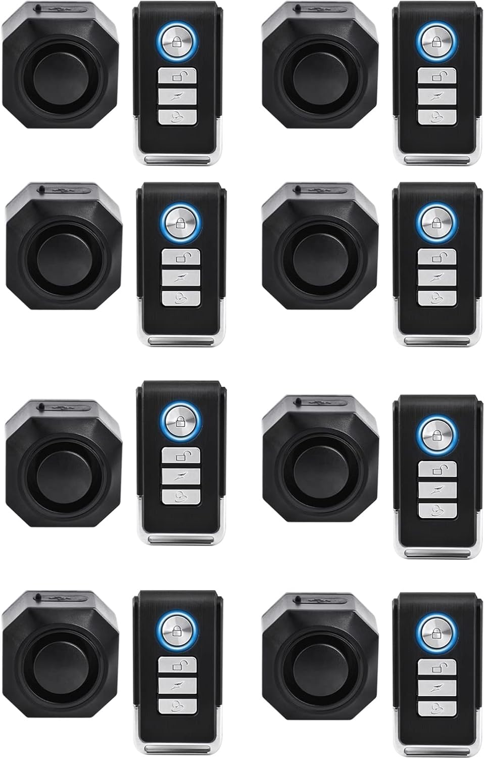 110dB Bike Alarm Wireless Vibration Motion Sensor with USB Charging Ports, Anti-Theft Bicycle Motorcycle Alarm with Remote, Waterproof, 8SET