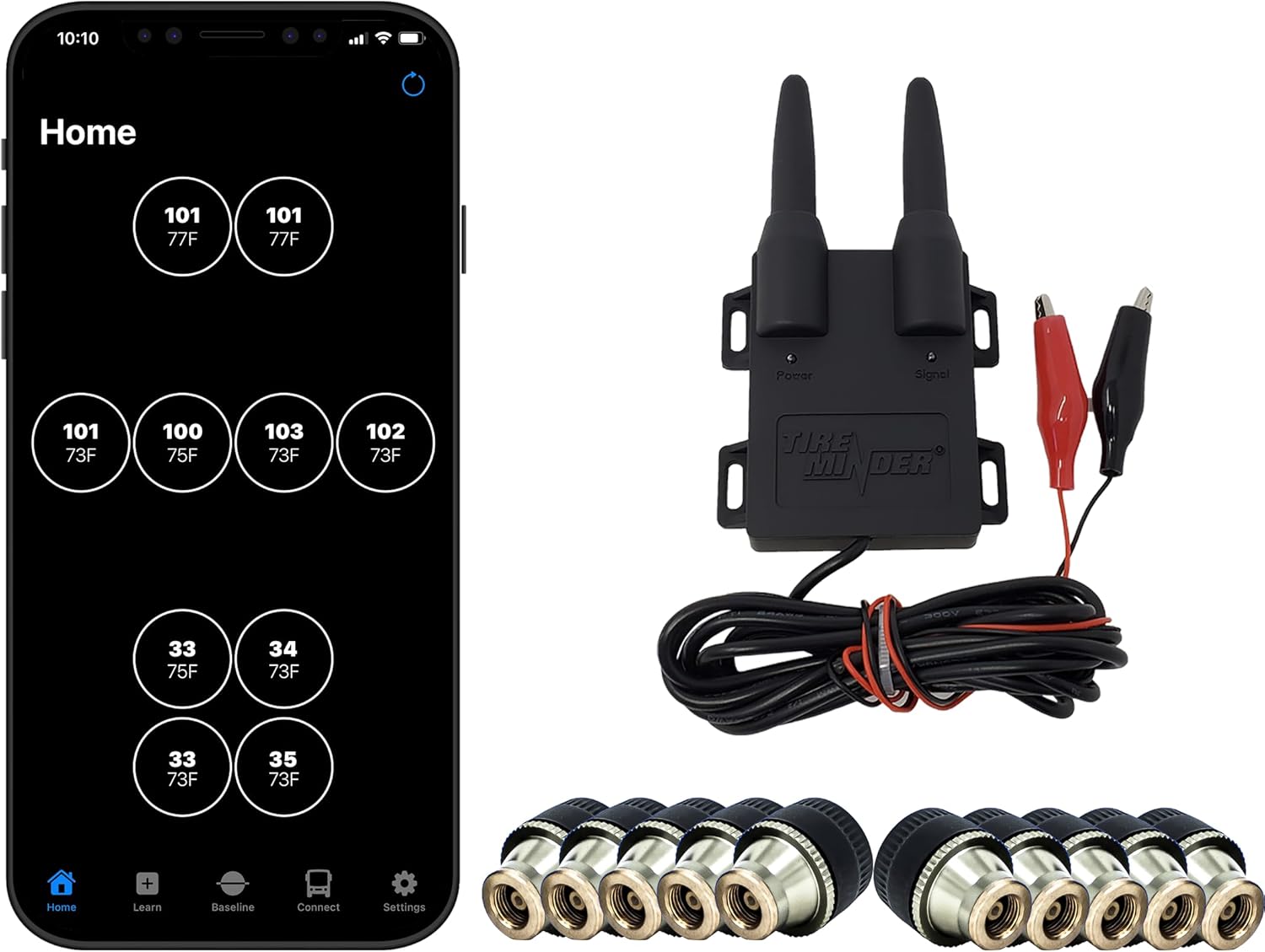 TireMinder Smart TPMS with 10 Transmitters for RVs, MotorHomes, 5th Wheels, Motor Coaches and Trailers