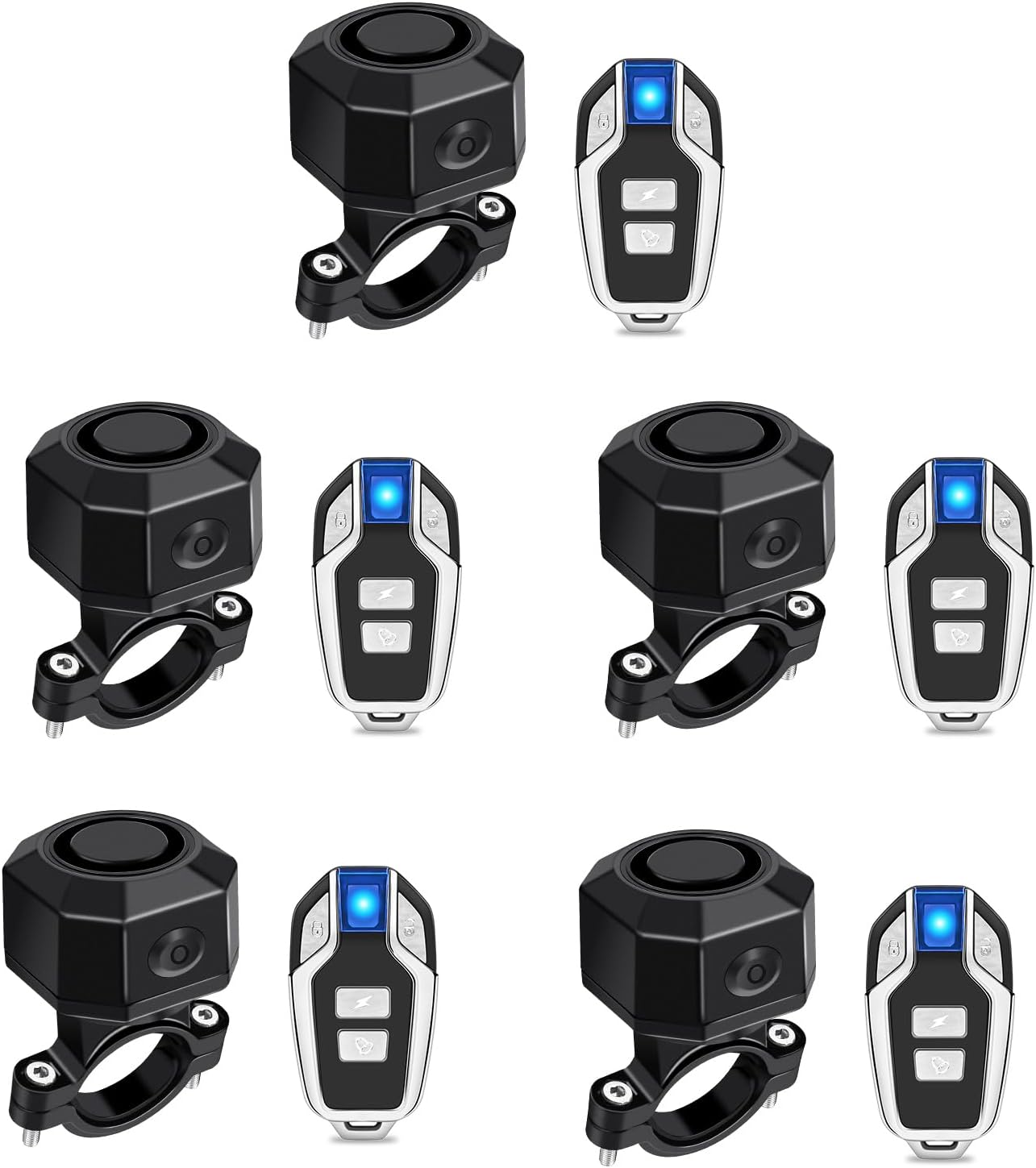NineLeaf Rechargeable Bike Alarm, Motorcycle Alarm System with Remote, Car Alarm with Motion Sensor,IP65 Waterproof, 3 Adjustable Volume,for Bicycle/Ebike/Motorcycle/Car,5PK