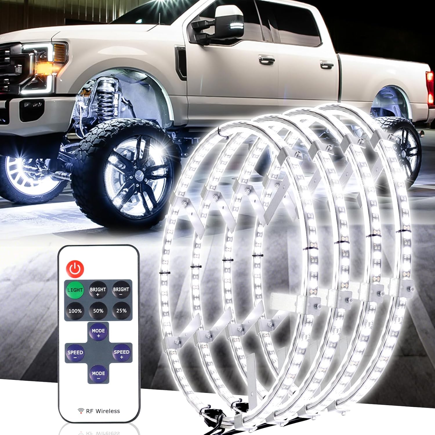 Tavaray 4PCS 15.5" Super Bright Double Row Pure White Wheel Lights, Remote Control with Flashing Modes, IP67 Waterproof, 6500K LED Wheel Ring Lights for Trucks Cars SUV Pickup Vehicles Offroad